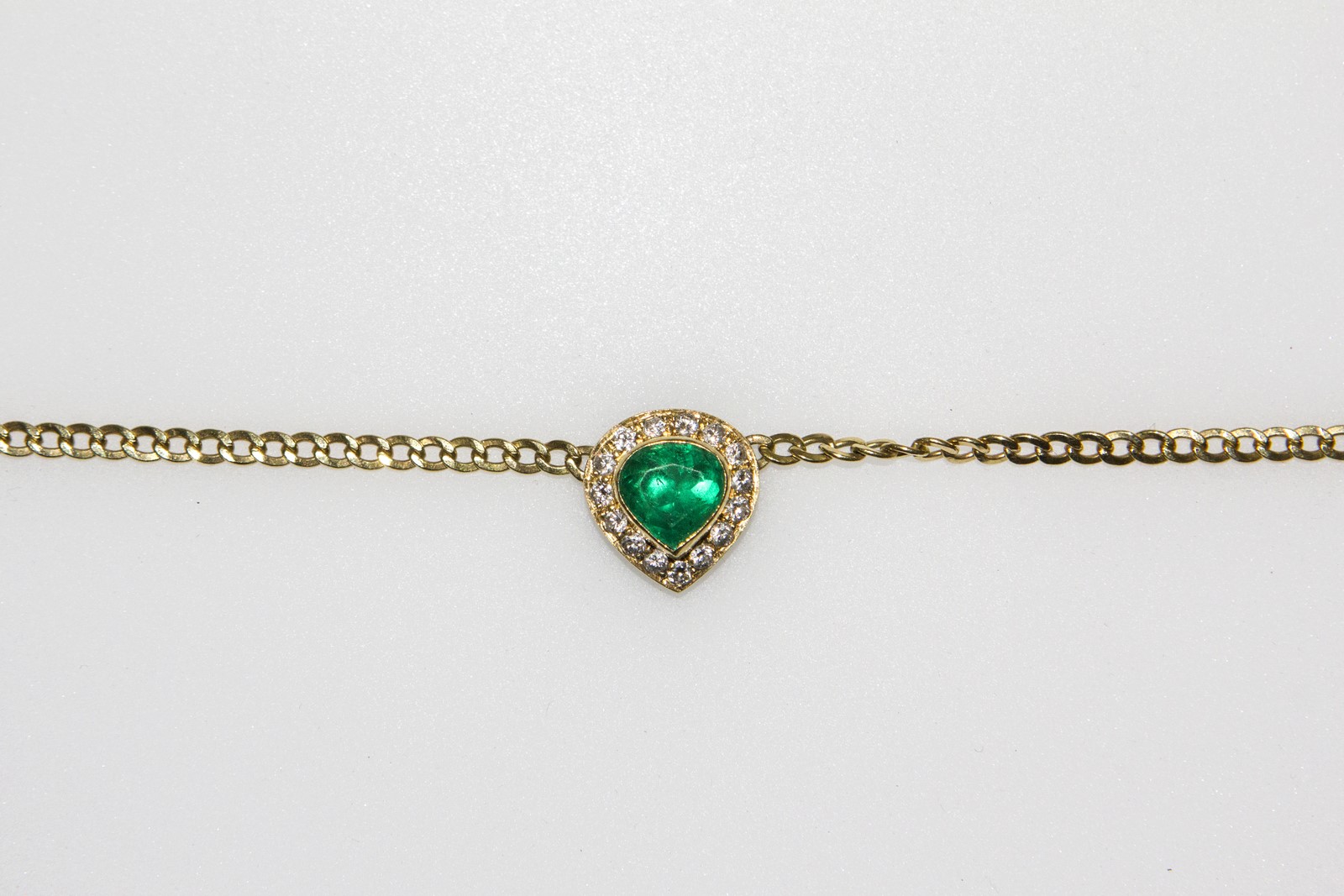 [Nessun Autore] Gold necklace with emerald pendent and diamonds. . . 18kt Yellow gold total gr 6.4 with central colombian emerald heart shape of 1.80 cts. Diamonds cts 0.32 apprx