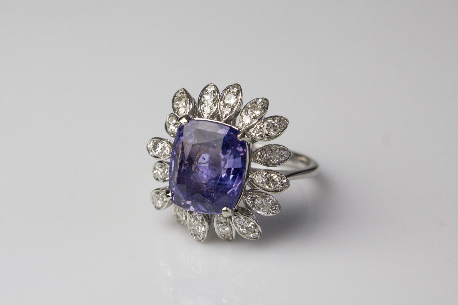 [Nessun Autore] Gold ring with sapphire and diamonds . . . White gold ring with sapphire cts 8.40 approx and brilliant and ouit ouit cut diamonds for a total of 1 cts aprox.
