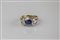 Anello in oro giallo e bianco 18kt, gr 8.80. Zaffiro cts 1.79. Diamanti baguettes cts 2.06. . .