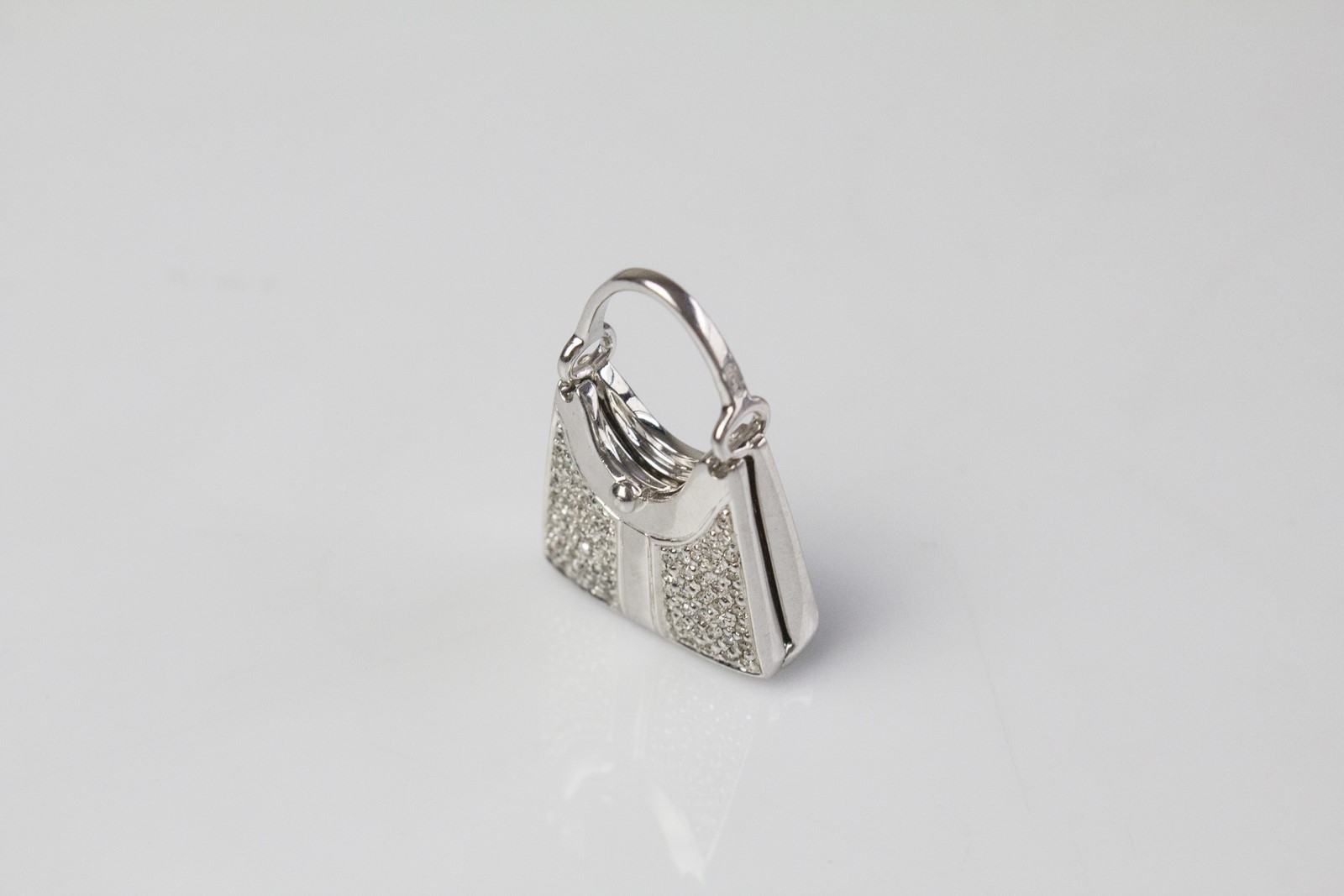 [Nessun Autore] Rosato pendent handbag shape. . . White gold handbag shape pendent signed rosato. Diamonds cts 0.62. Total gr 8.10