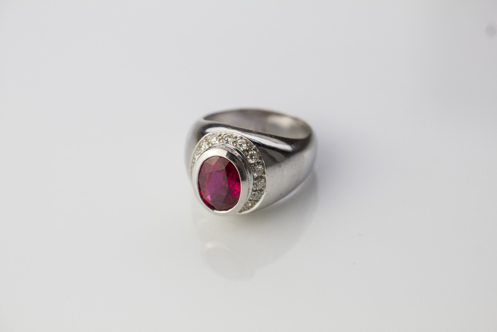 [Nessun Autore] Gold ring with diamonds and synthetic ruby . . . White gold ring, gr 11.70. Diamonds cts 0.36 and synthetic ruby