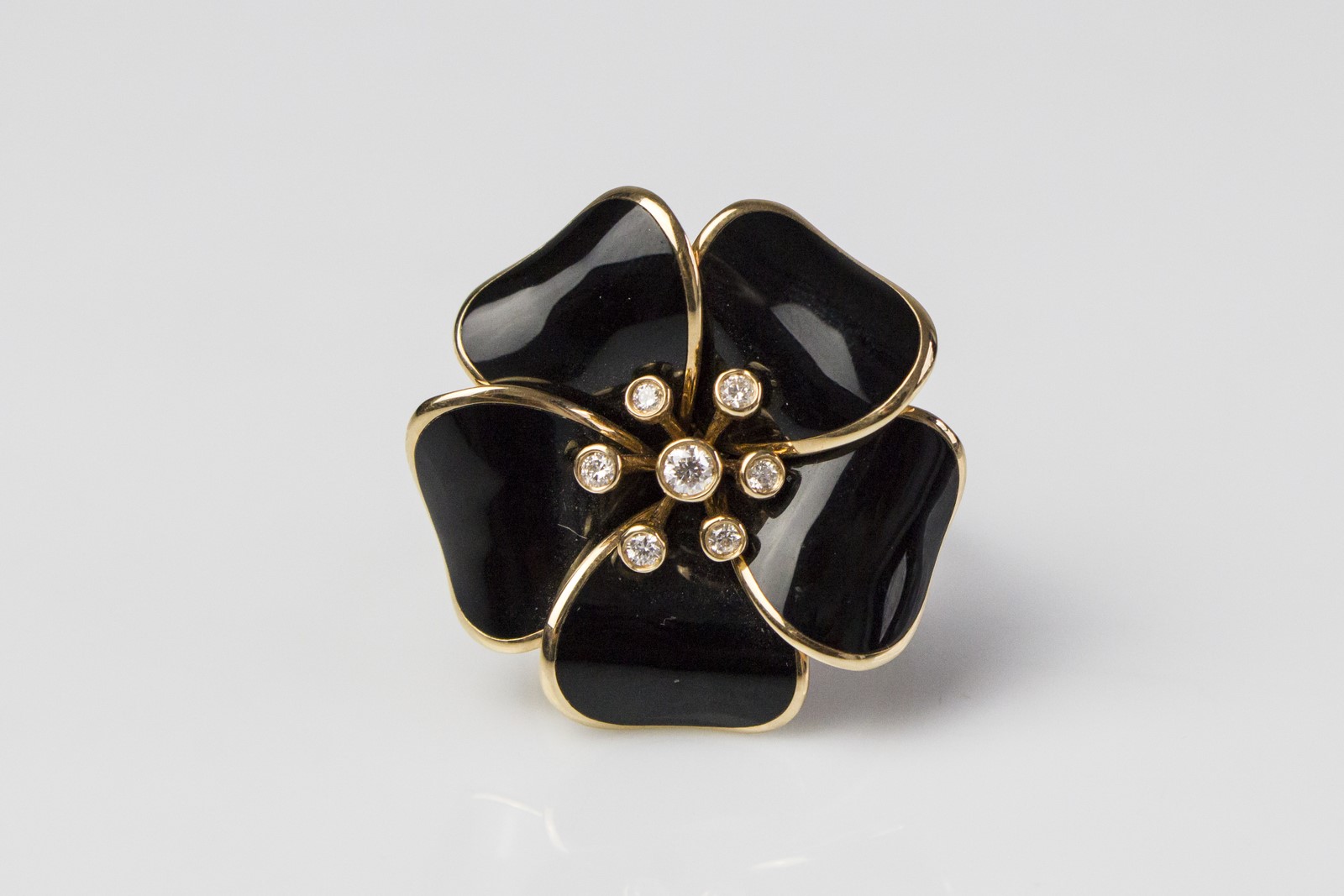 Lot 153 | Anello in oro firmato Rosato. . . Anello in oro giallo e smalto nero firmato...