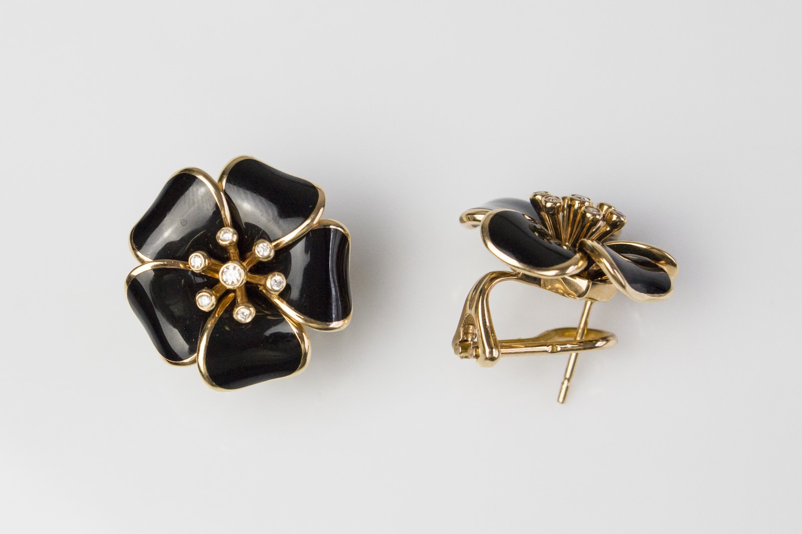 [Nessun Autore] Gold Rosato earrings . . . Yellow gold Rosato earrings and enamels. Diamonds cts 0.12. Total gr 13.20