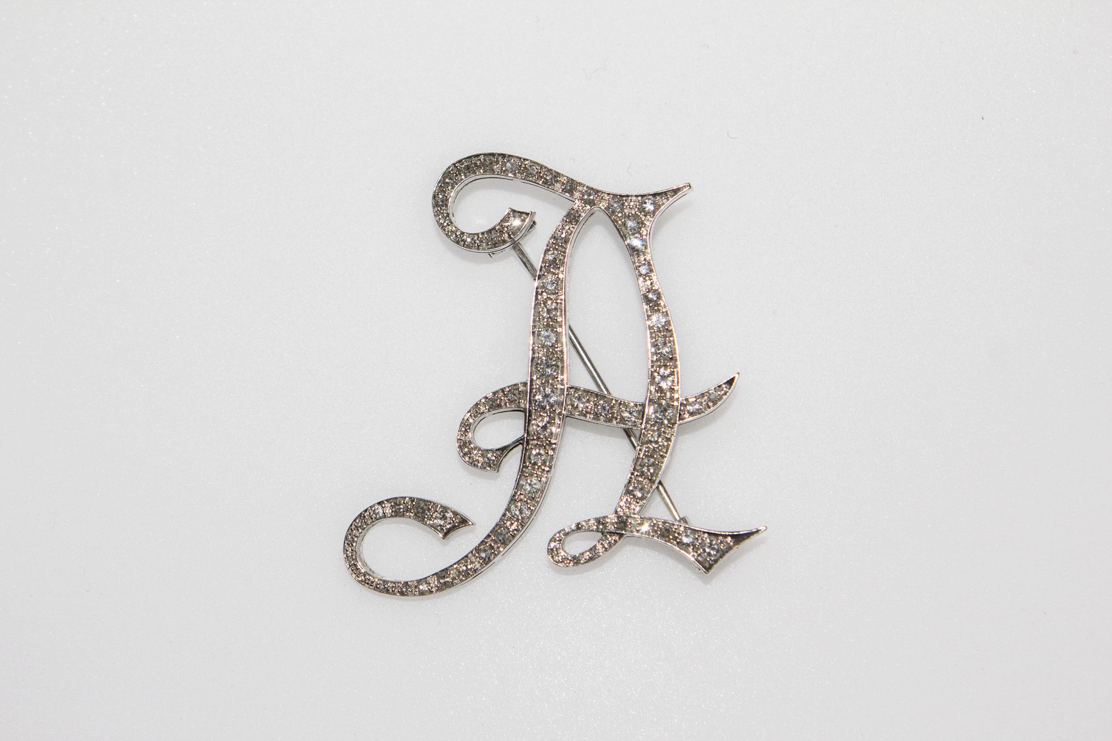 Lot 168 | Spilla iniziale A in oro bianco e diamanti. -. . Spilla in oro bianco di...