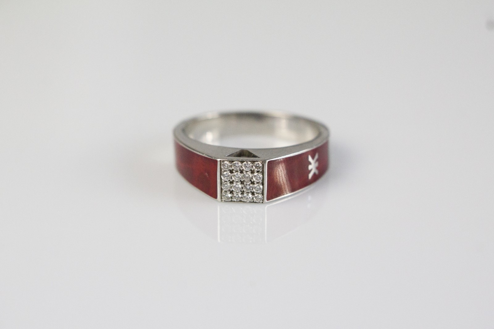 [Nessun Autore] Korloff gold ring . . . White gold ring, enamels and diamonds cts 0.16. Signed Korloff