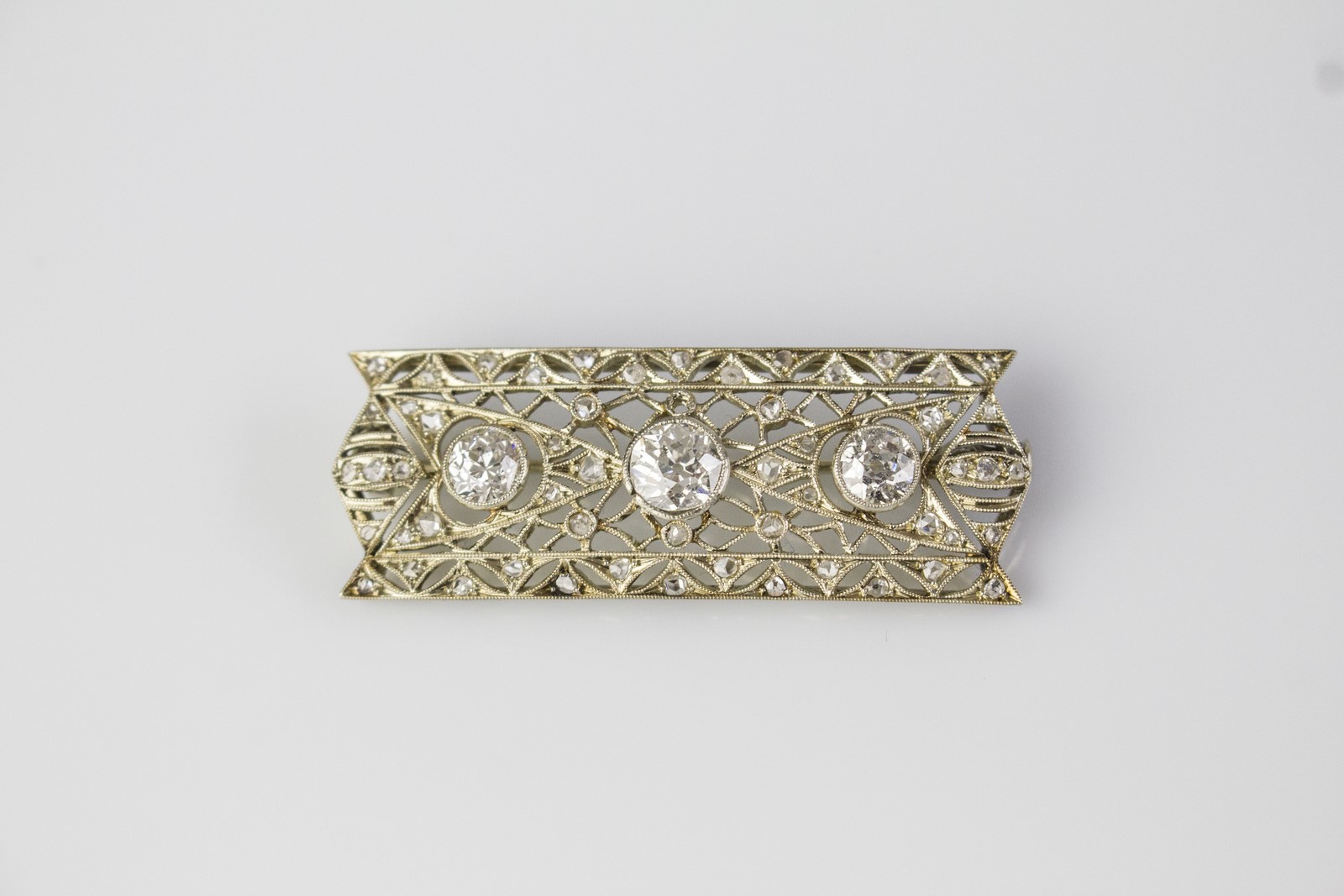 BUCCELLATI Buccellati platinum brooch with diamonds. . . Buccellati platinum brooch, 11 total gr with ouit ouit diamonds and central diamond cts 0.40
