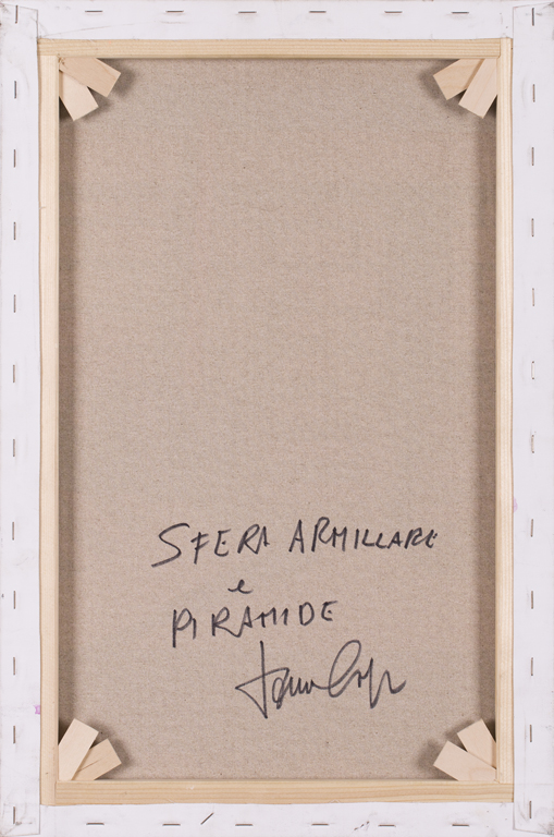 TONINO CAPUTO (1933) Sfera armillare e piramidi Acrilici su tela cm 60x40...