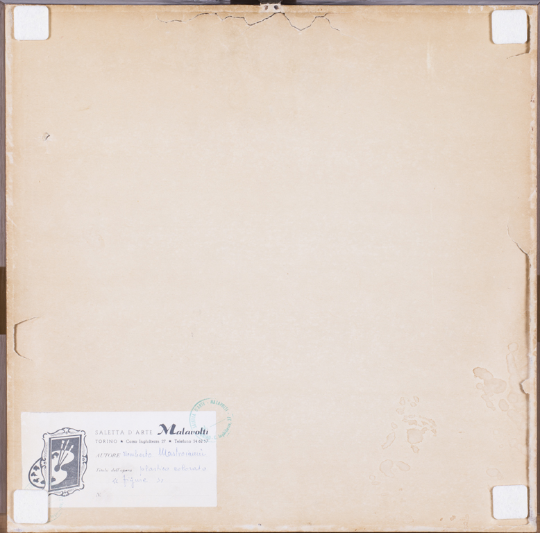 Etichetta e timbri della Galleria d'Arte Malavolti (TO) al retro del cartone protettivo