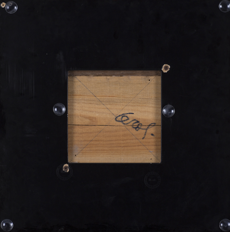 Autentica dell'Artista su fotografia con timbro e conferma di autenticità e provenienza a cura della Galleria De Nisi (RM)