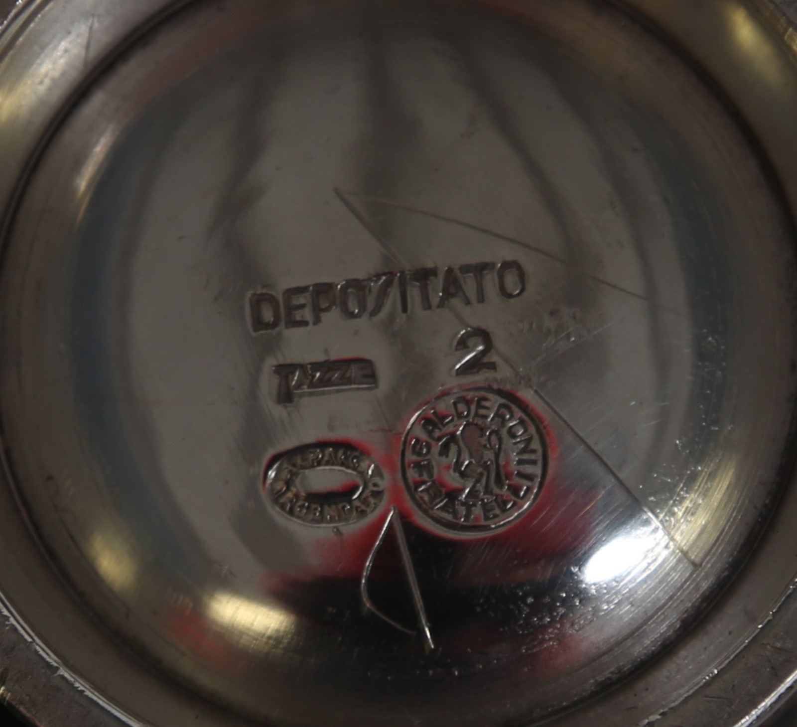 PONTI GIO' (1891 - 1979) Parte di servizio d'albergo in alpacca per Calderoni, anni 60. Marchio alla base. -. . Misura ciotola: 9 x 19 x 14