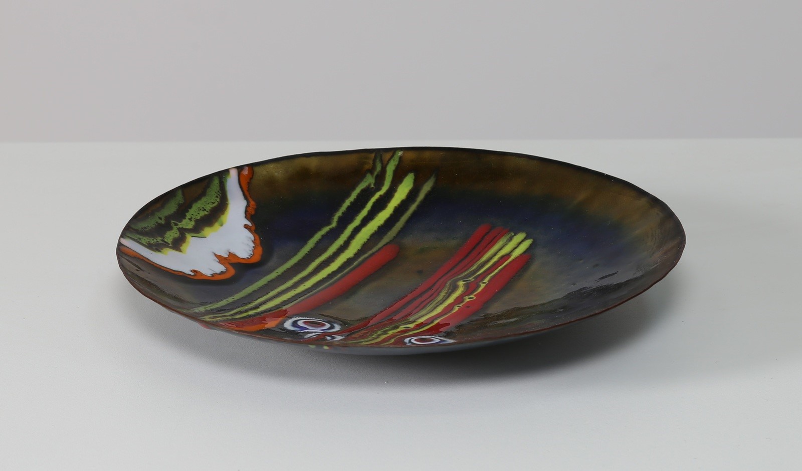 MANIFATTURA ITALIANA Piatto in rame smaltato, anni 60. -. Cm 29,00 x 3,50 x...