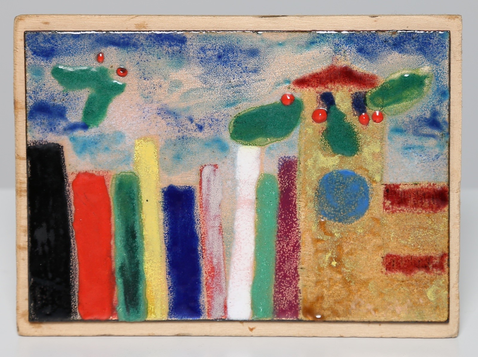 DE POLI PAOLO (1905 - 1996) Disegno su lastra in rame smaltato fissato su legno, Smalti De Poli Padova anni 50. Etichetta originale alla base. . -. Cm 16,00 x 11,50 x 1,00.
