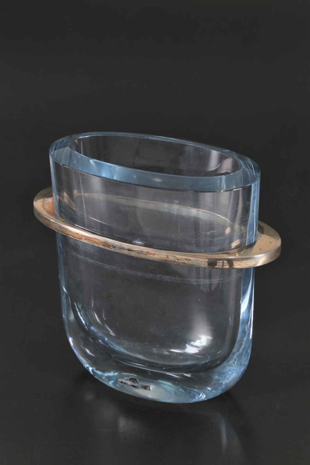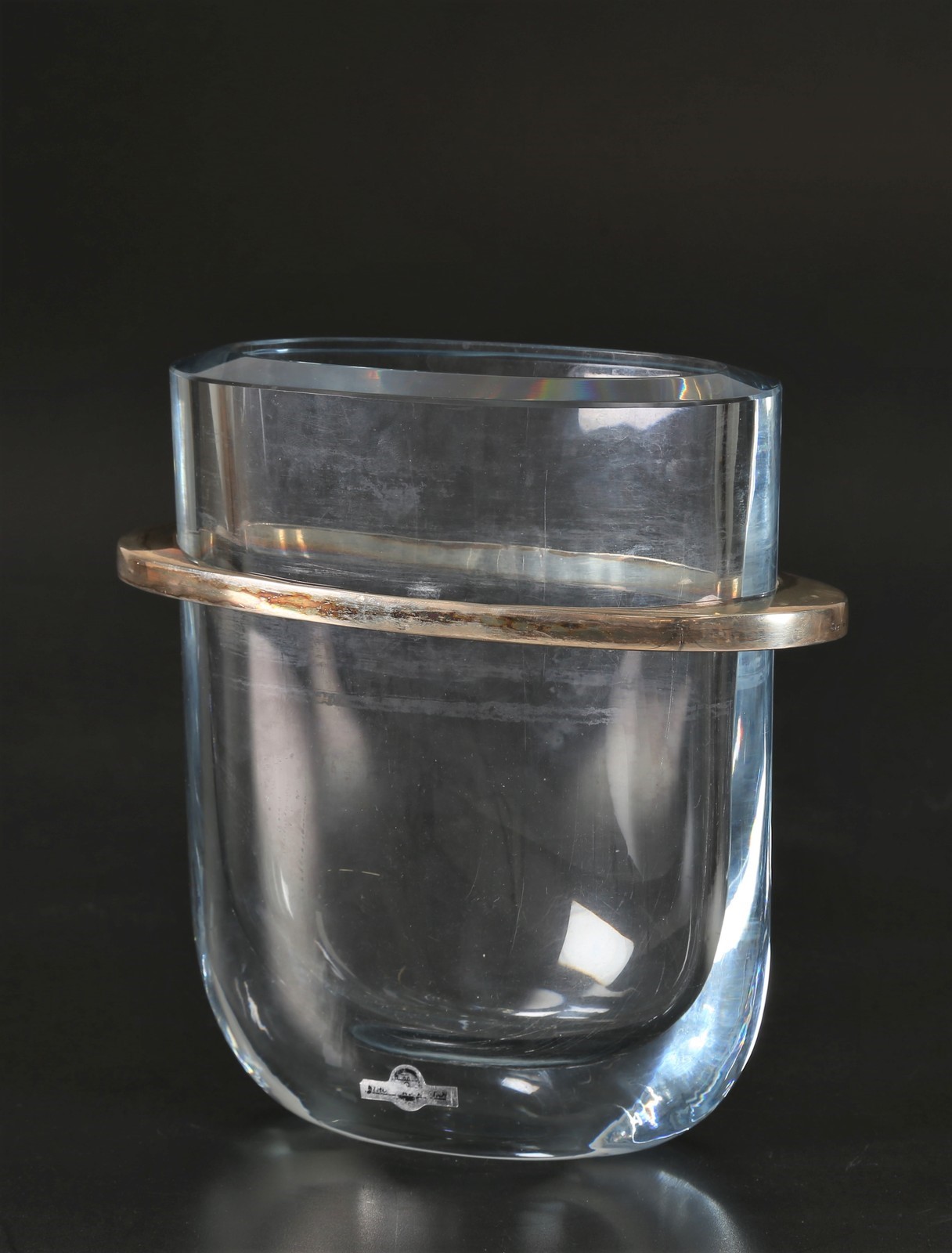 STROMBERGSHYTTAN Vaso in cristallo e metallo, Svezia anni 50. Firma alla base...