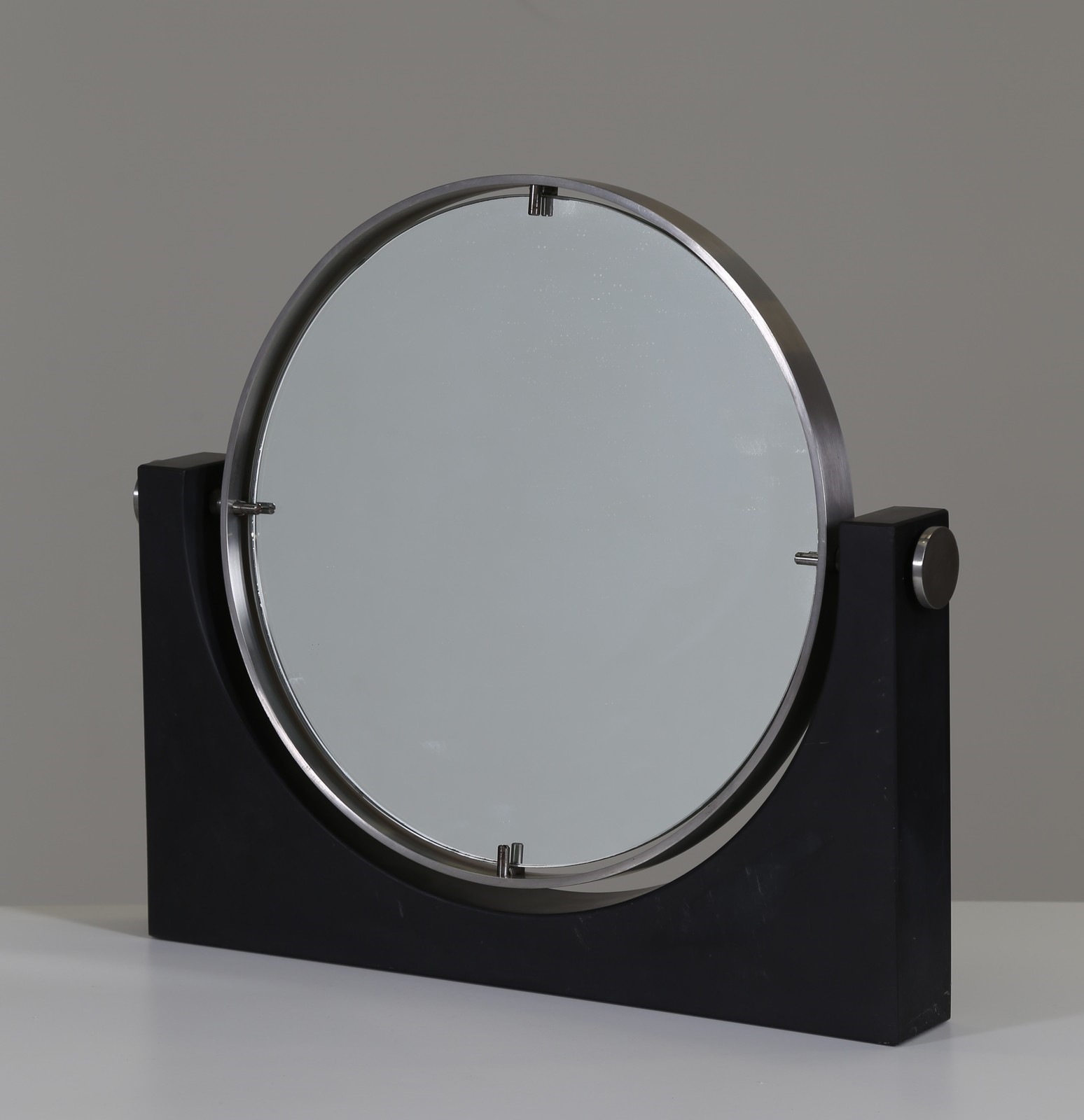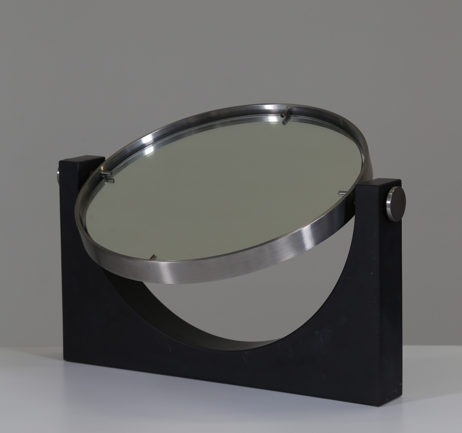 MANIFATTURA ITALIANA Specchio da tavolo in pietra lavagna, acciaio e vetro,...