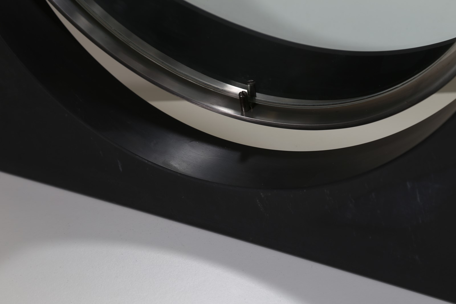 MANIFATTURA ITALIANA Specchio da tavolo in pietra lavagna, acciaio e vetro, anni 70. -. Cm 46,00 x 40,00 x 6,00.