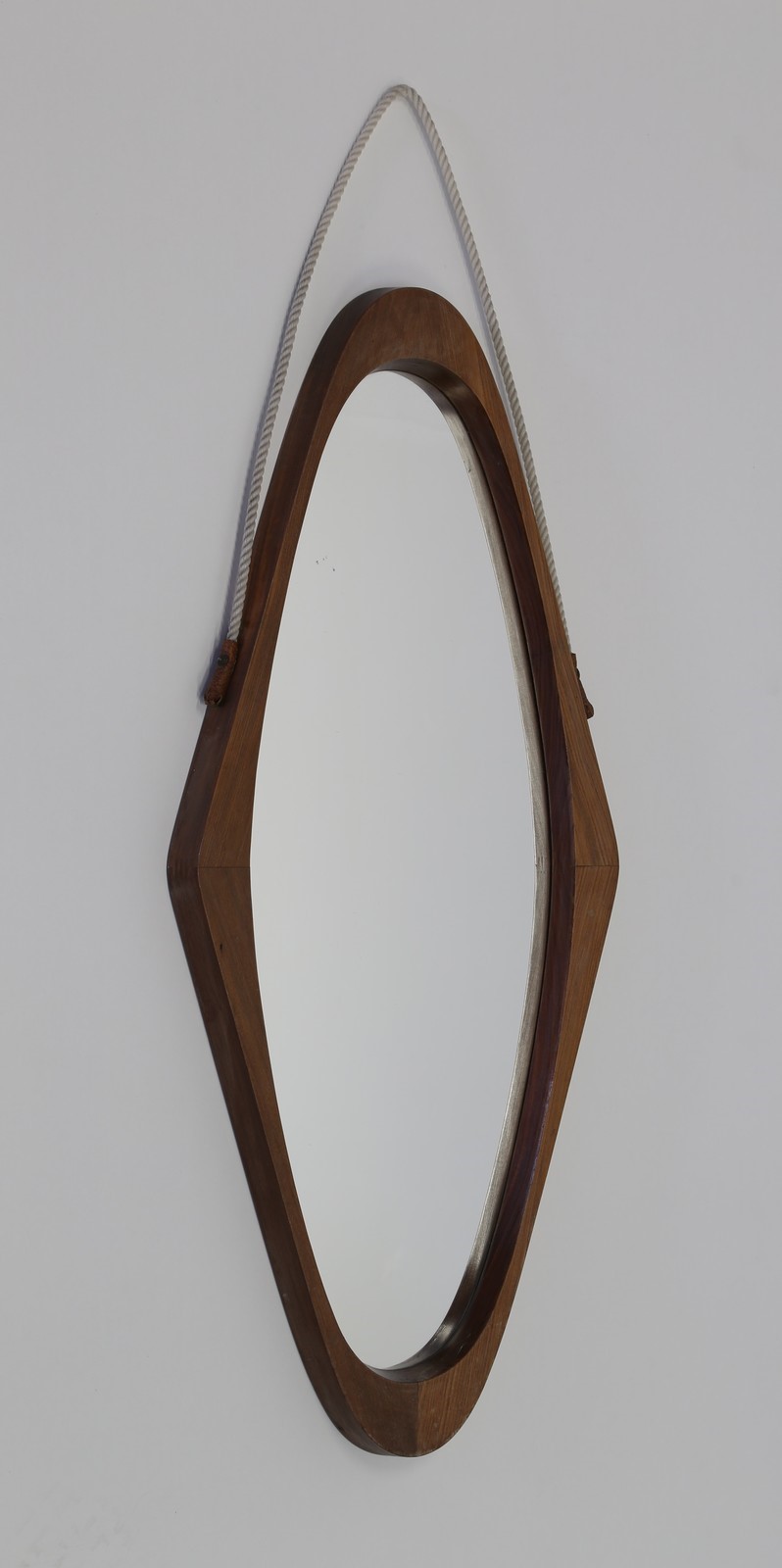 Lot 33 | MANIFATTURA ITALIANA Specchio in legno, vetro e corda anni 50°. -. Cm 41,00 x...