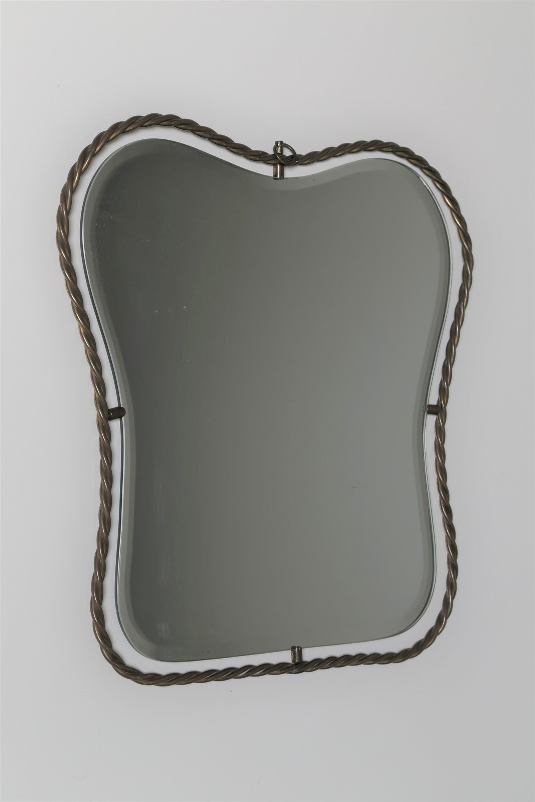 MANIFATTURA ITALIANA Specchio in ottone tortile e vetro, anni 50. -. Cm 36,00...