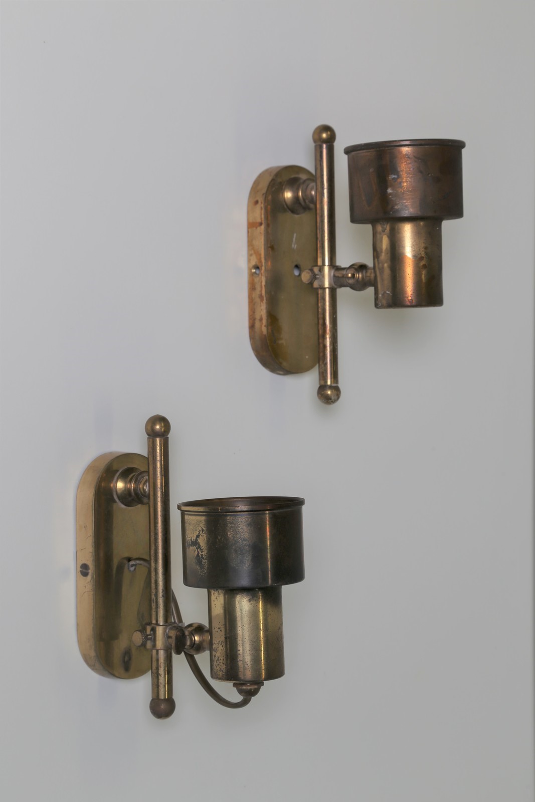 MANIFATTURA ITALIANA Coppia di lampade da parete in ottone, anni 50. -. Cm...