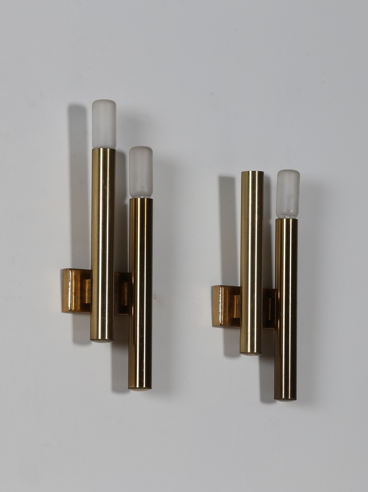 STILNOVO Coppia di lampade da parete ottone, anni 60. -. Cm 12,50 x 30,00 x 5,00.