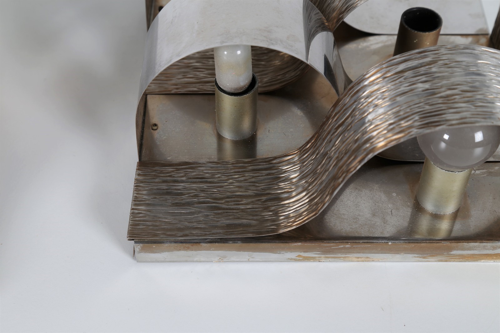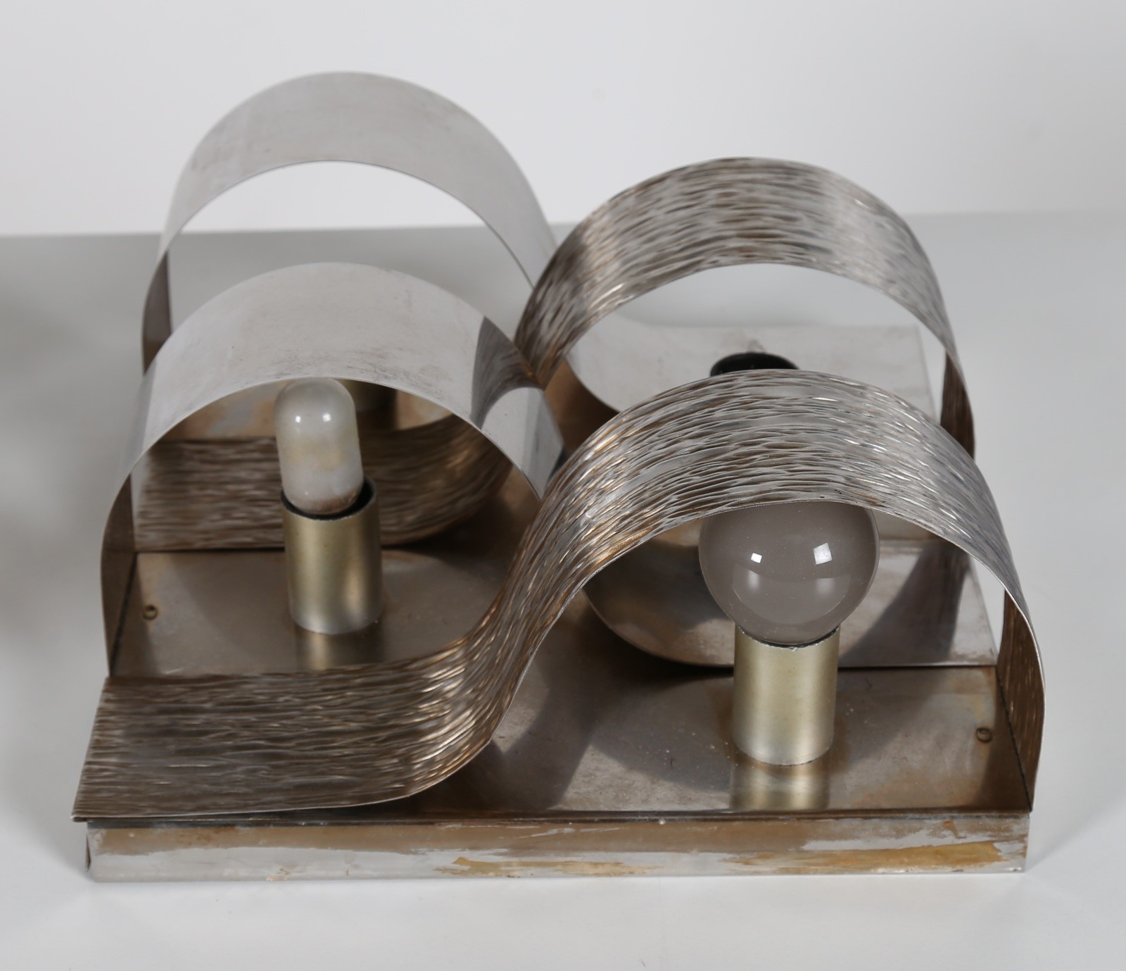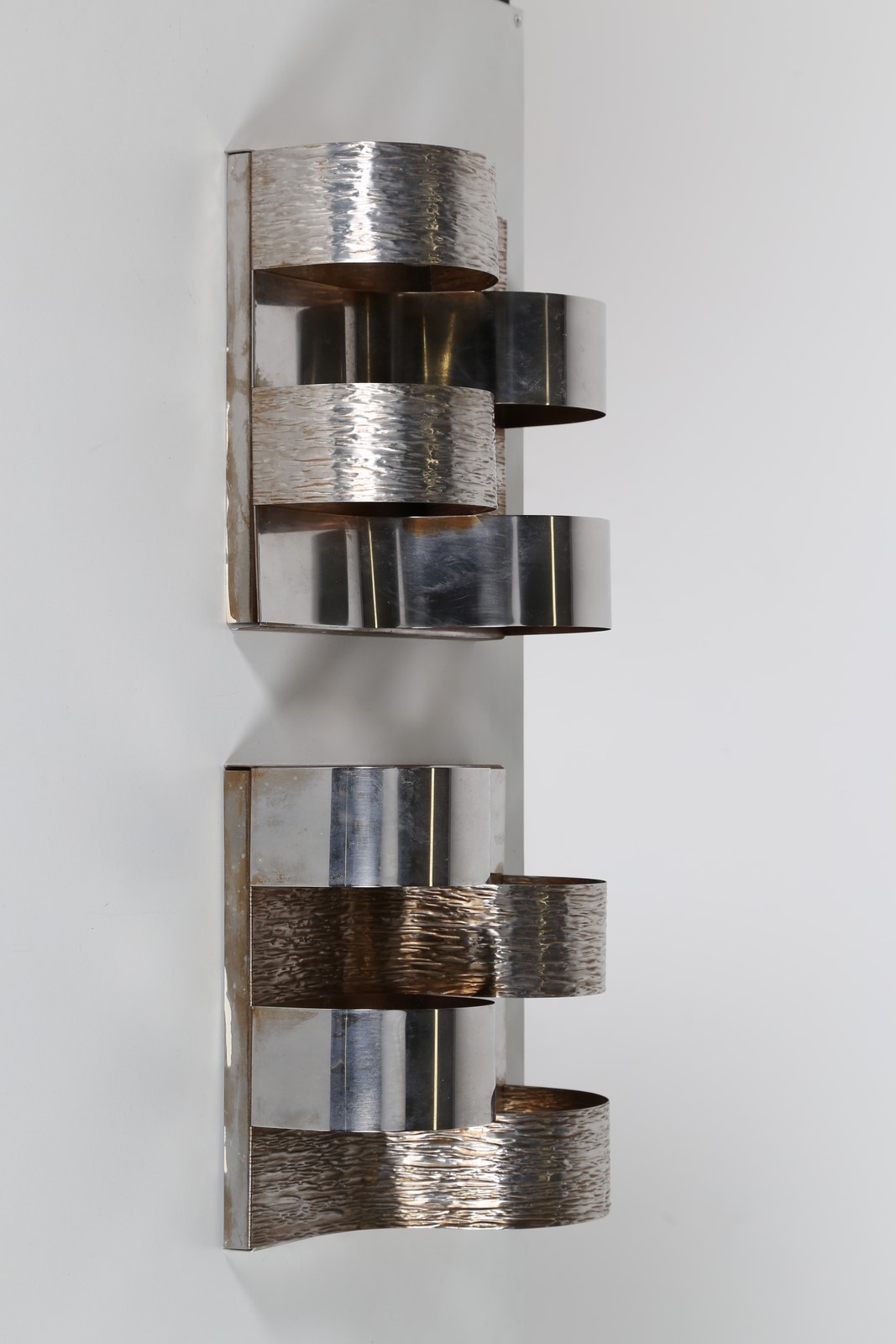 REGGIANI GOFFREDO Coppia di lampade da parete in metallo argentato, per Reggiani anni 60. -. Cm 24,50 x 24,50 x 11,50.