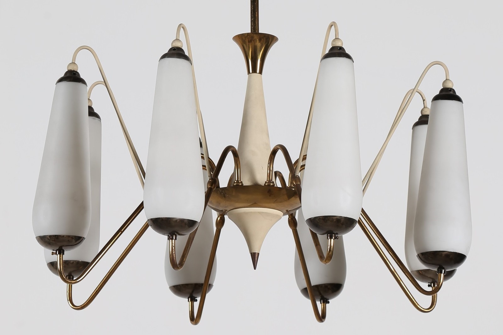 MANIFATTURA ITALIANA Lampadario in ottone metallo laccato e vetro opalino,...