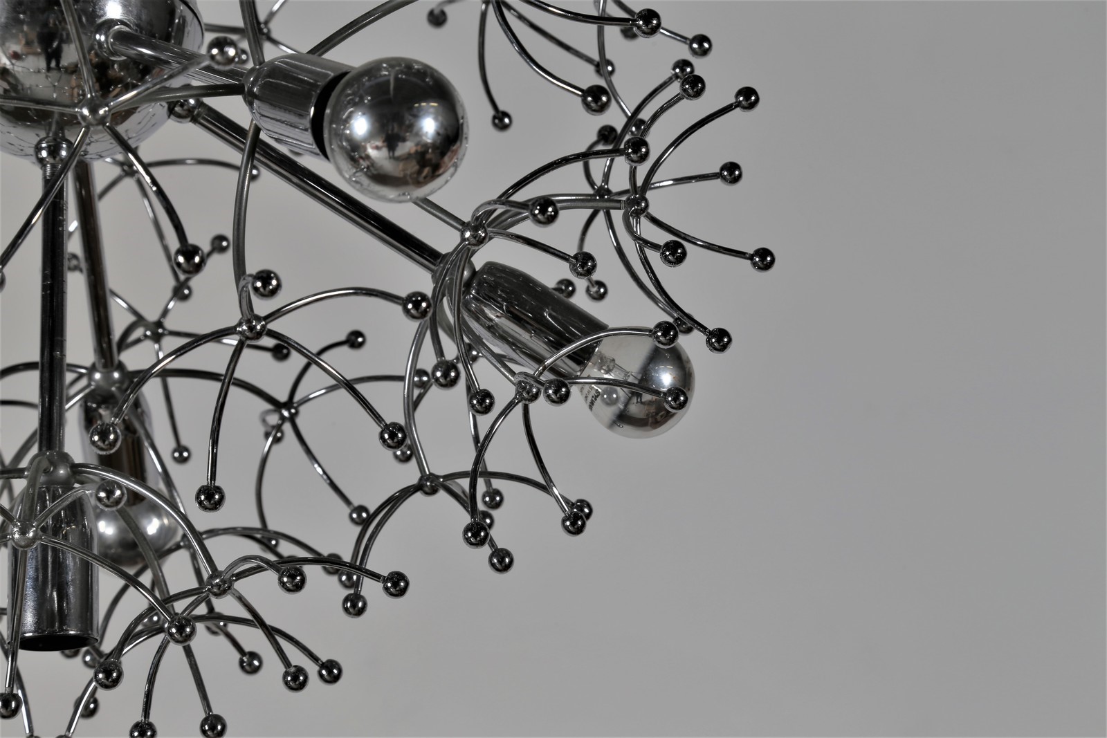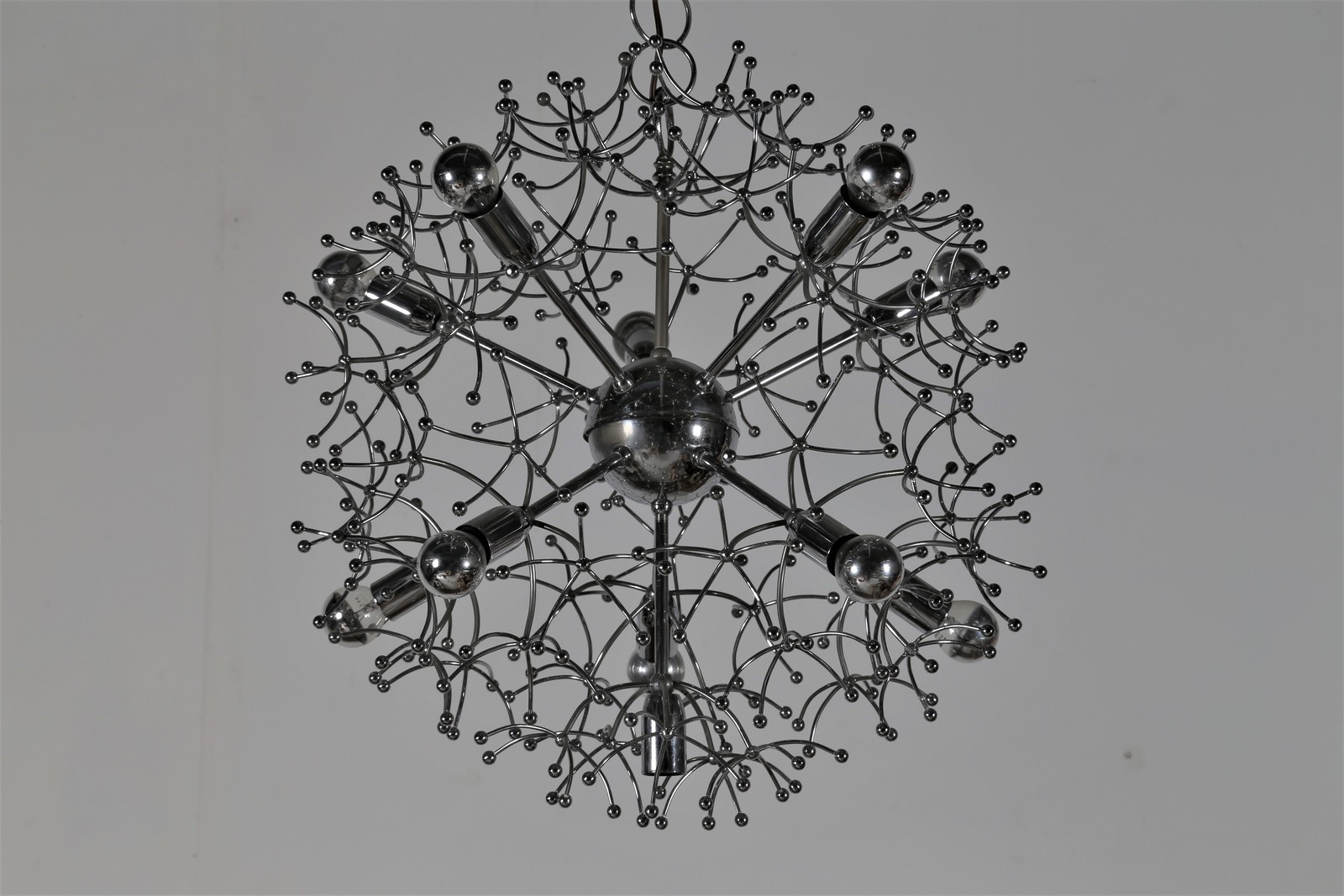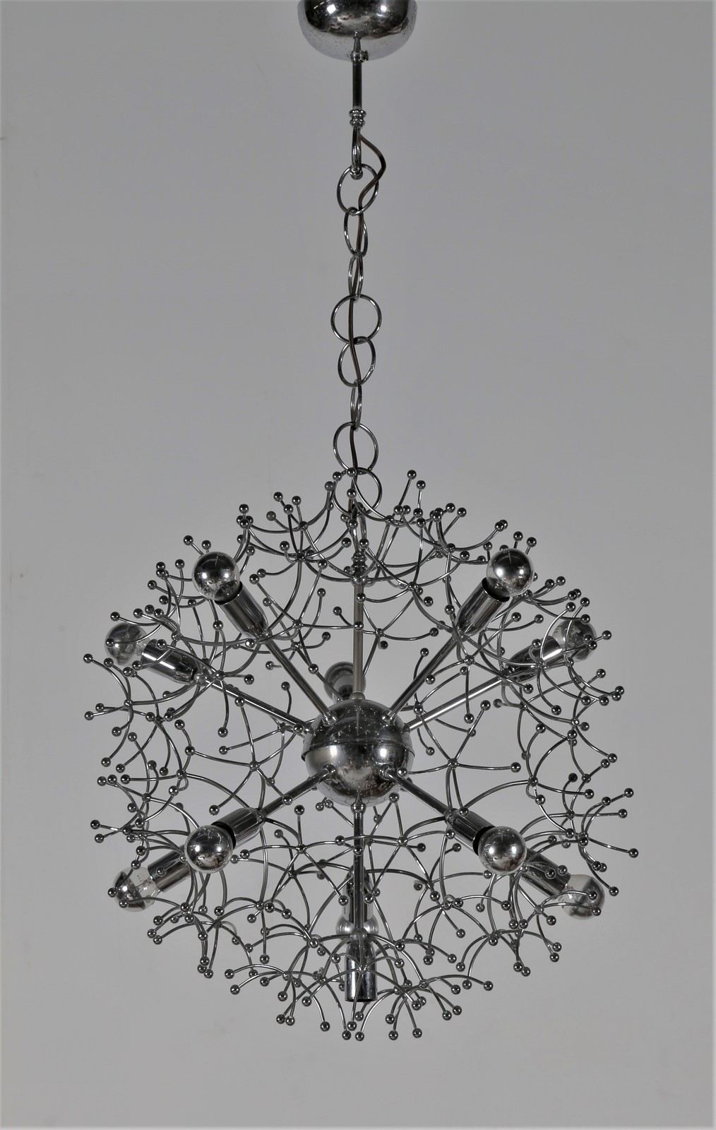 SCIOLARI GAETANO Lampadario in metallo cromato mod sputnik, anni 60. -. Cm 53,00 x 100,00 x 53,00.