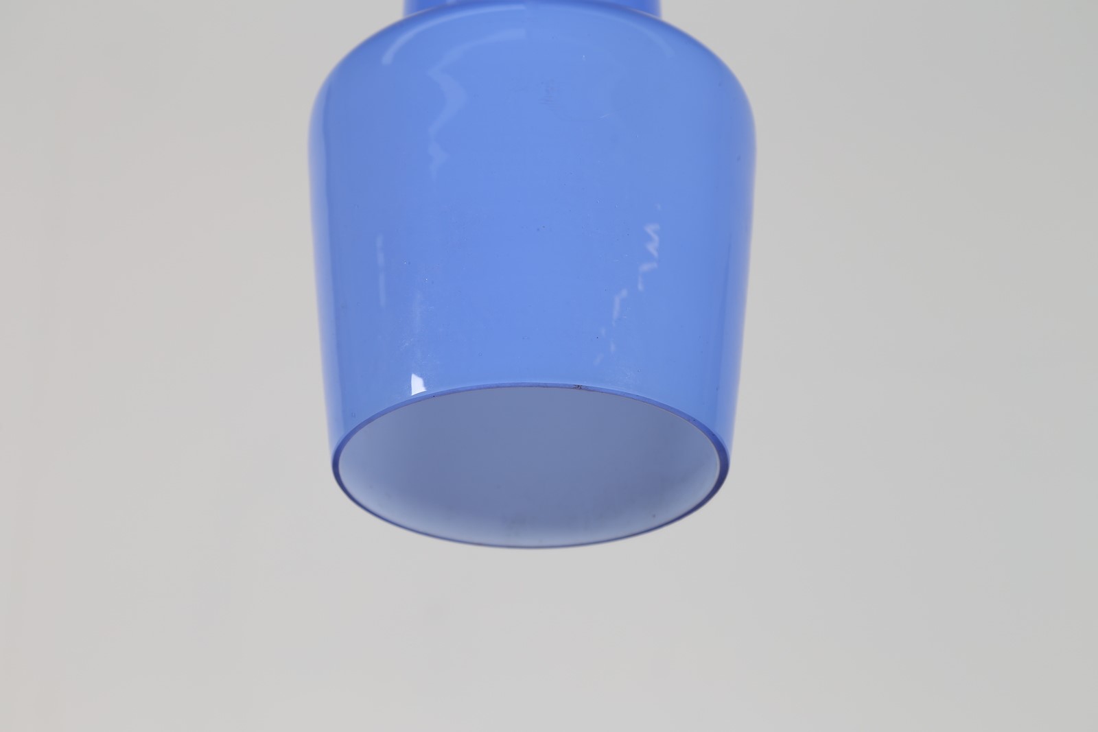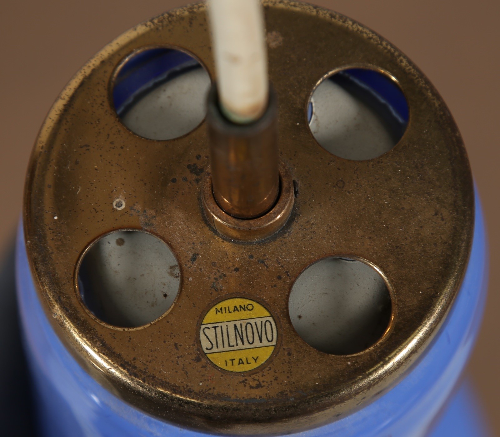 STILNOVO Lampada a sospensione in ottone e vetro incamiciato, anni 60. Etichetta presente. . Cm 14,00 x 100,00 x 14,00.