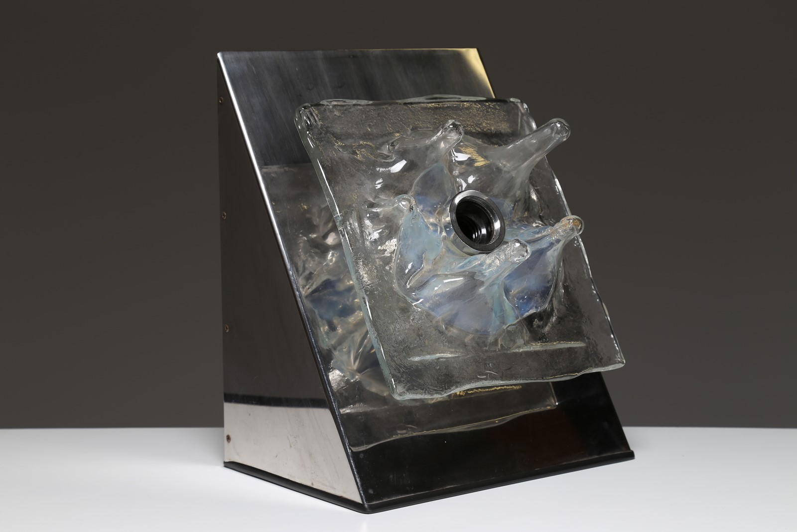 Lot 134 | MANIFATTURA ITALIANA Lampada da tavolo in metallo cromato e vetro, anni 70....