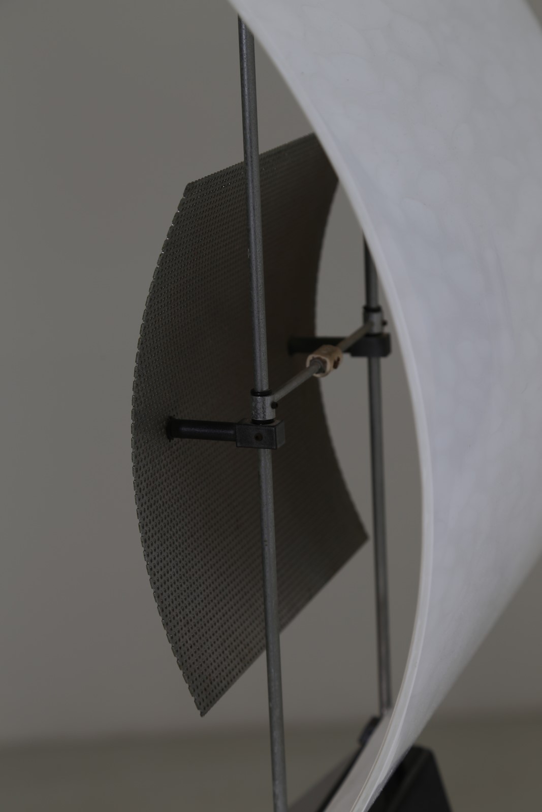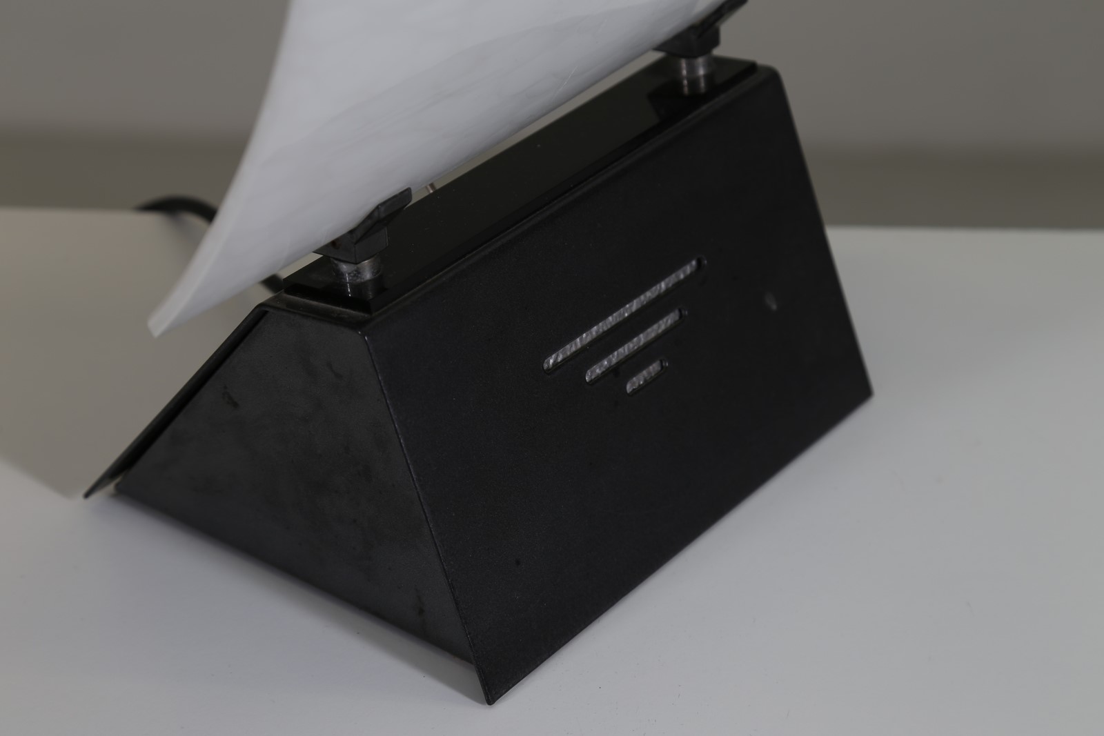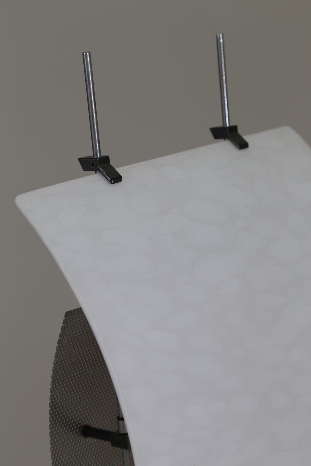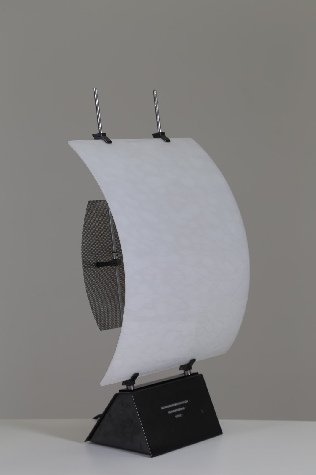 MANIFATTURA ITALIANA Lampada da tavolo in metallo laccato e vetro, anni 70....