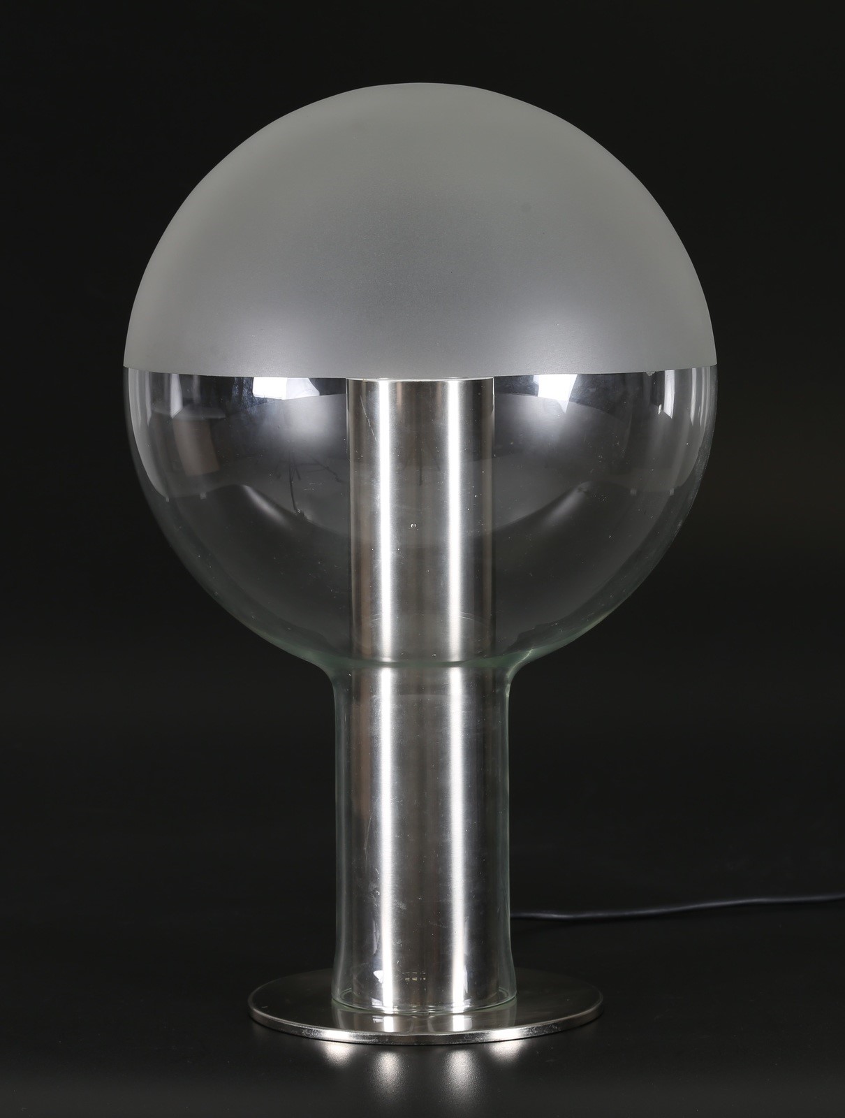 GIGI & PEPE TANZI Lampada da tavolo in vetro e metallo cromato per Dalca anni...