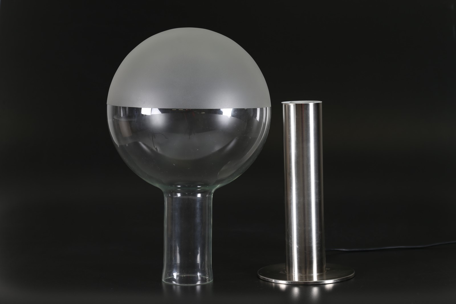 GIGI & PEPE TANZI Lampada da tavolo in vetro e metallo cromato per Dalca anni 70. -. Cm 30,00 x 48,00 x 30,00.