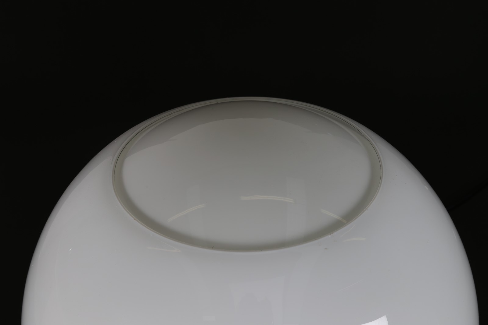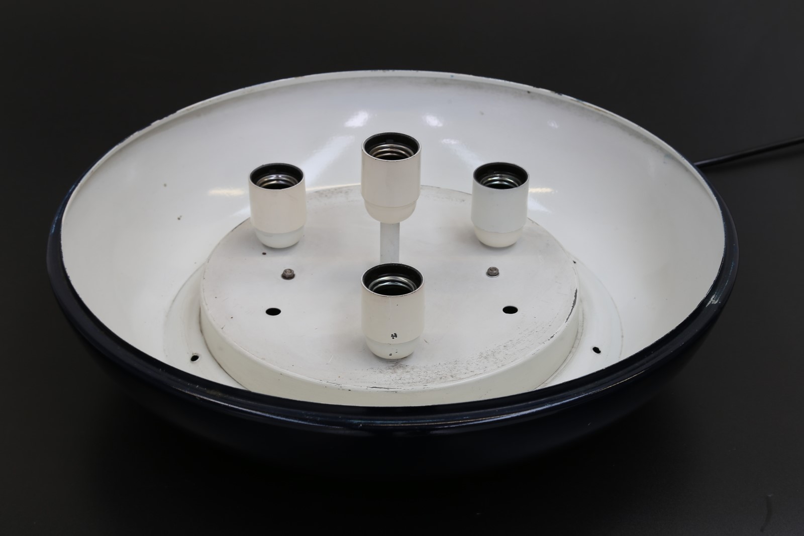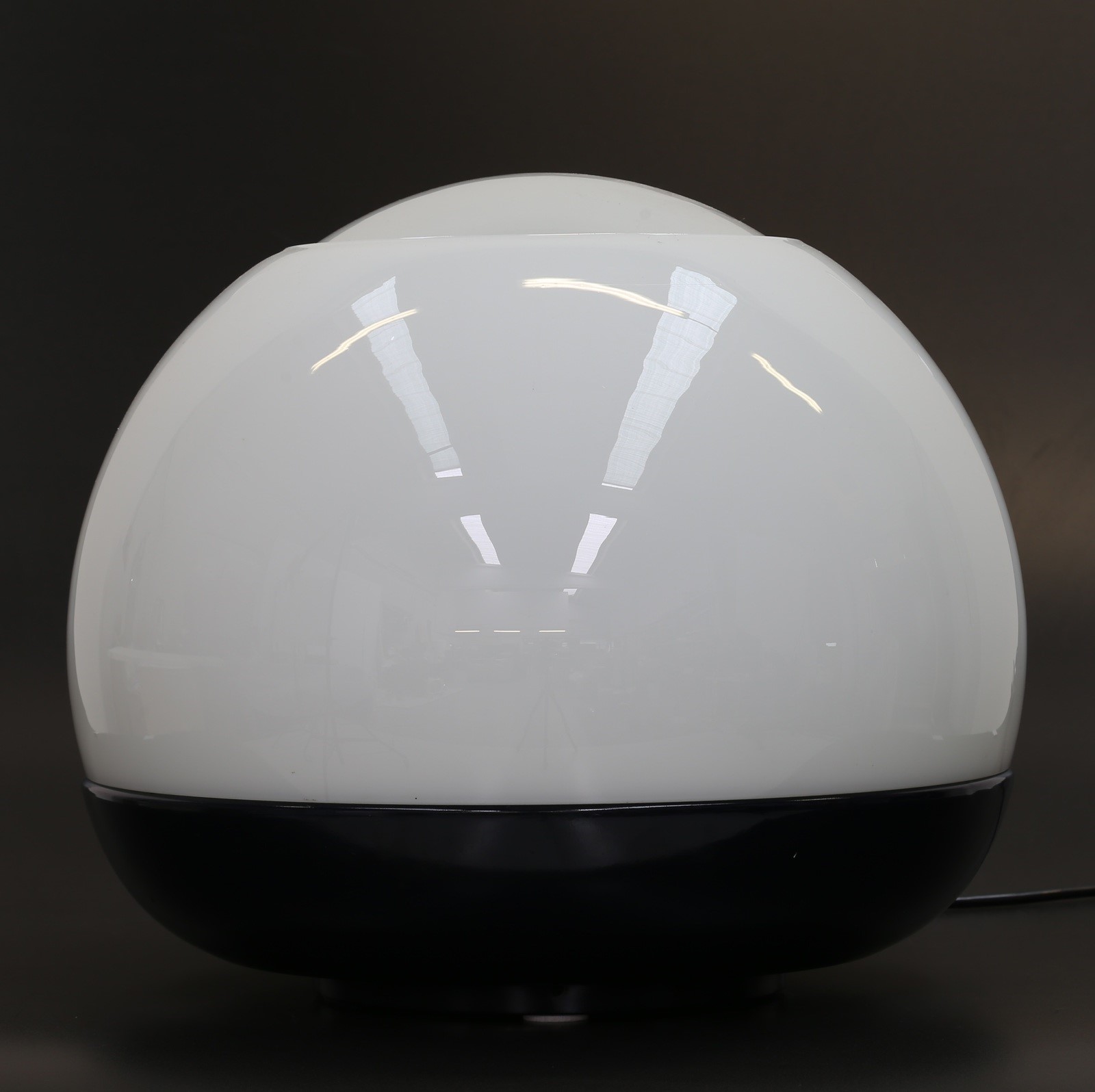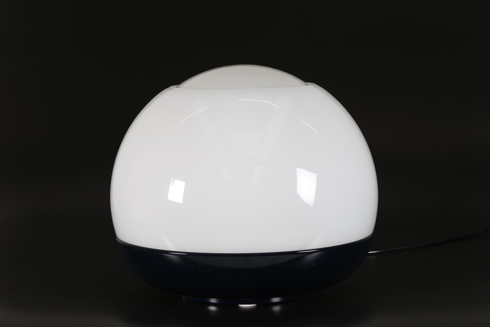 LEONARDO FERRARI & FRANCO MAZZUCCHELLI Lampada da tavolo in metallo laccato blu e vetro opalino mod. Platea per Artemide. -. Cm 40,00 x 37,00 x 40,00.