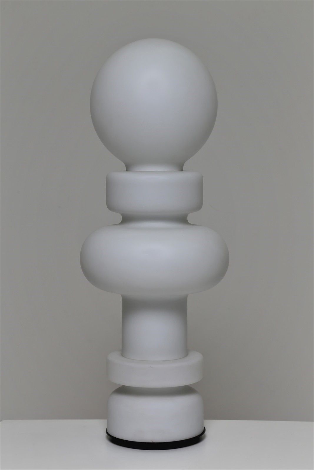PICCOLI BOBO Lampada da terra in vetro satinato opalino, mod. Re per Fontana Arte, anni 60. -. Cm 25,00 x 89,00 x 25,00.