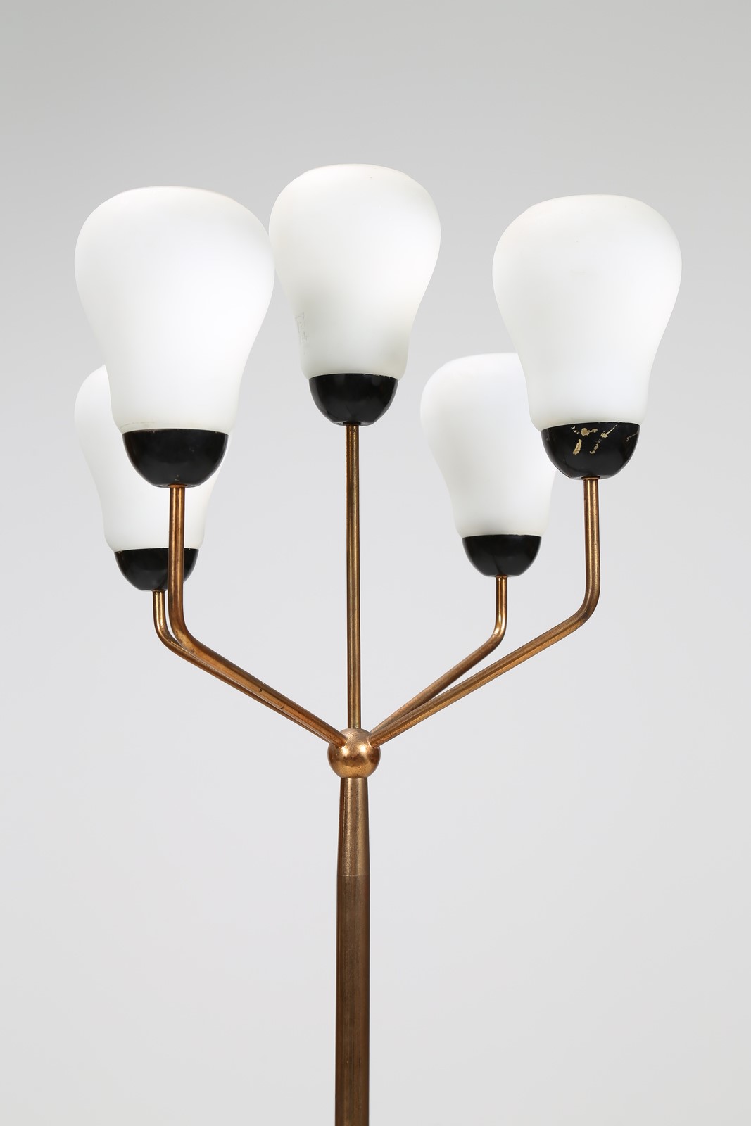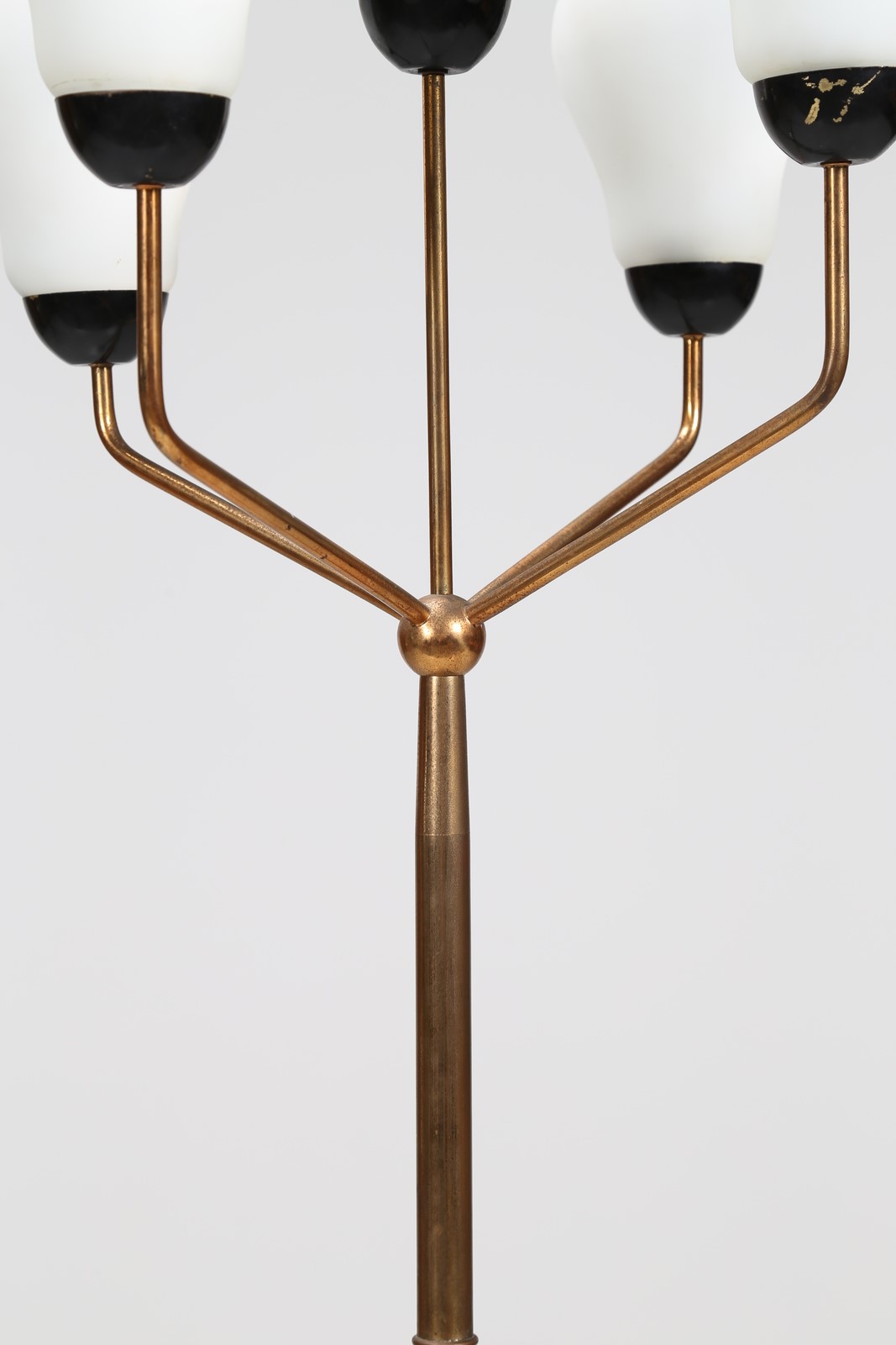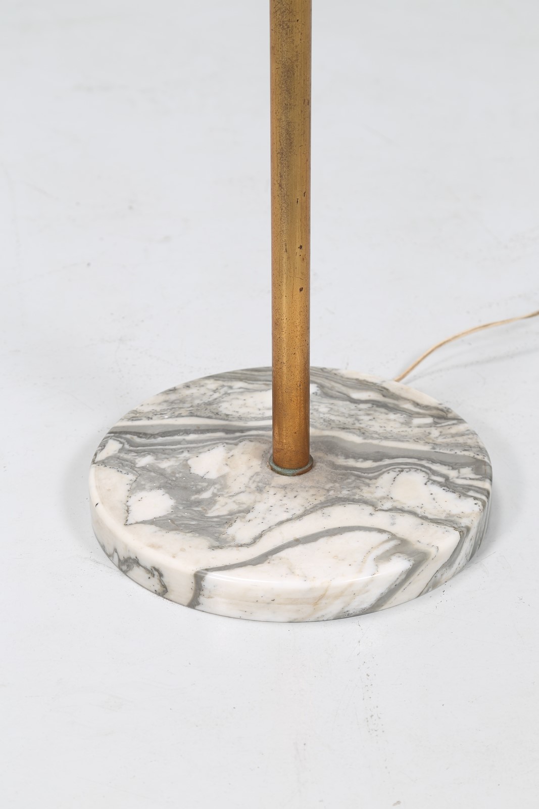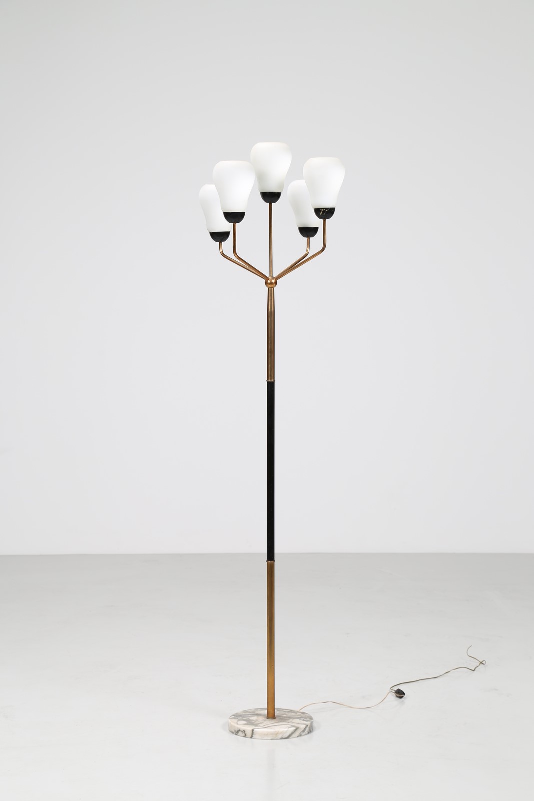 MANIFATTURA ITALIANA Lampada da terra in ottone, metallo laccato, con base in marmo e vetro opalino, anni 50. -. Cm 50,00 x 185,00 x 50,00.