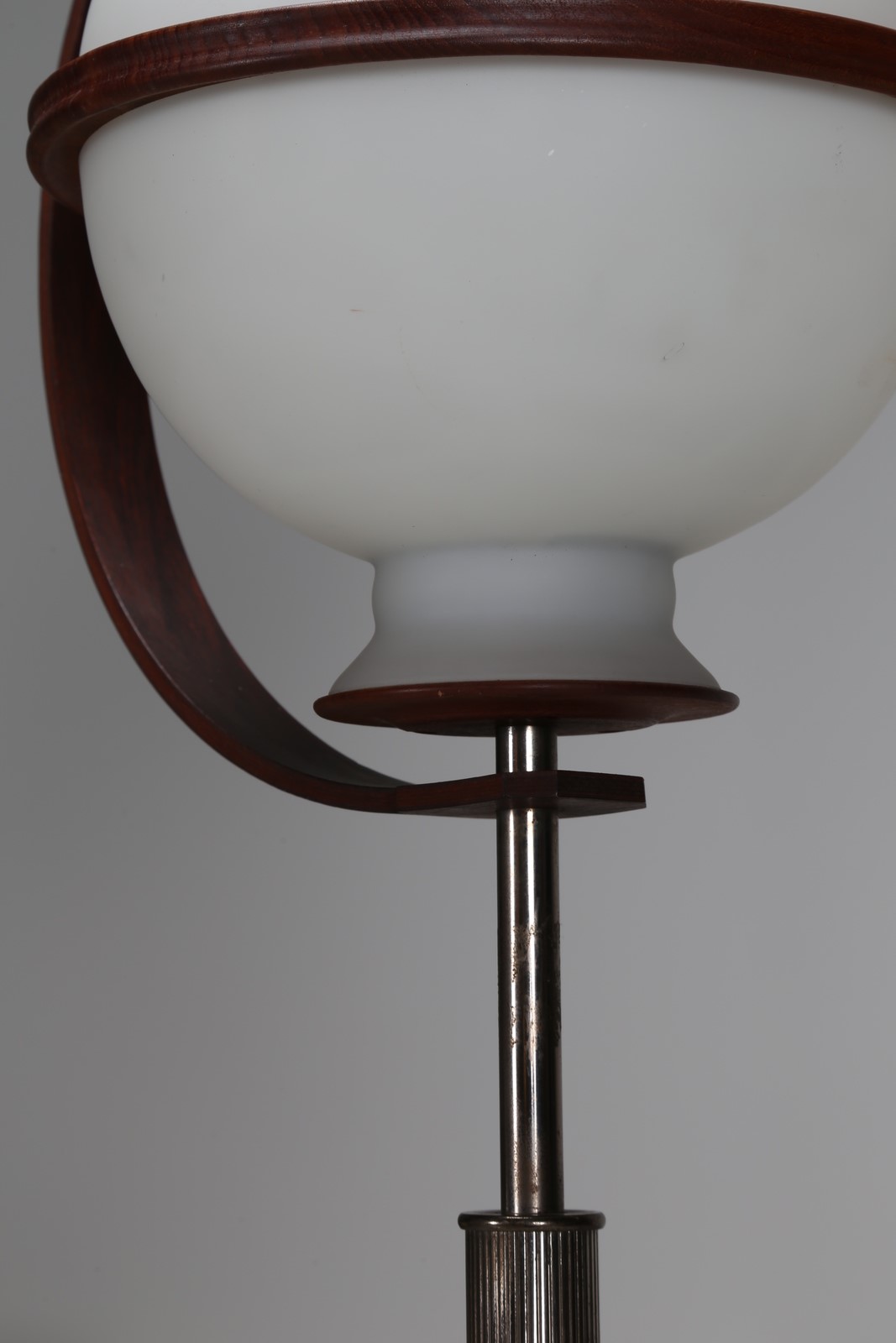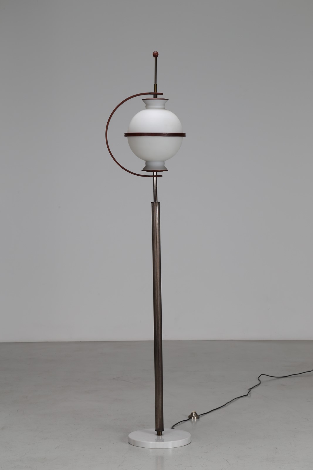 BROTTO ANGELO (1914 - 2002) Lampada terra in metallo anodizzato e ottone, vetro satinato e base in marmo, per Esperia anni 60 . -. Cm 38,00 x 186,00 x 30,00.