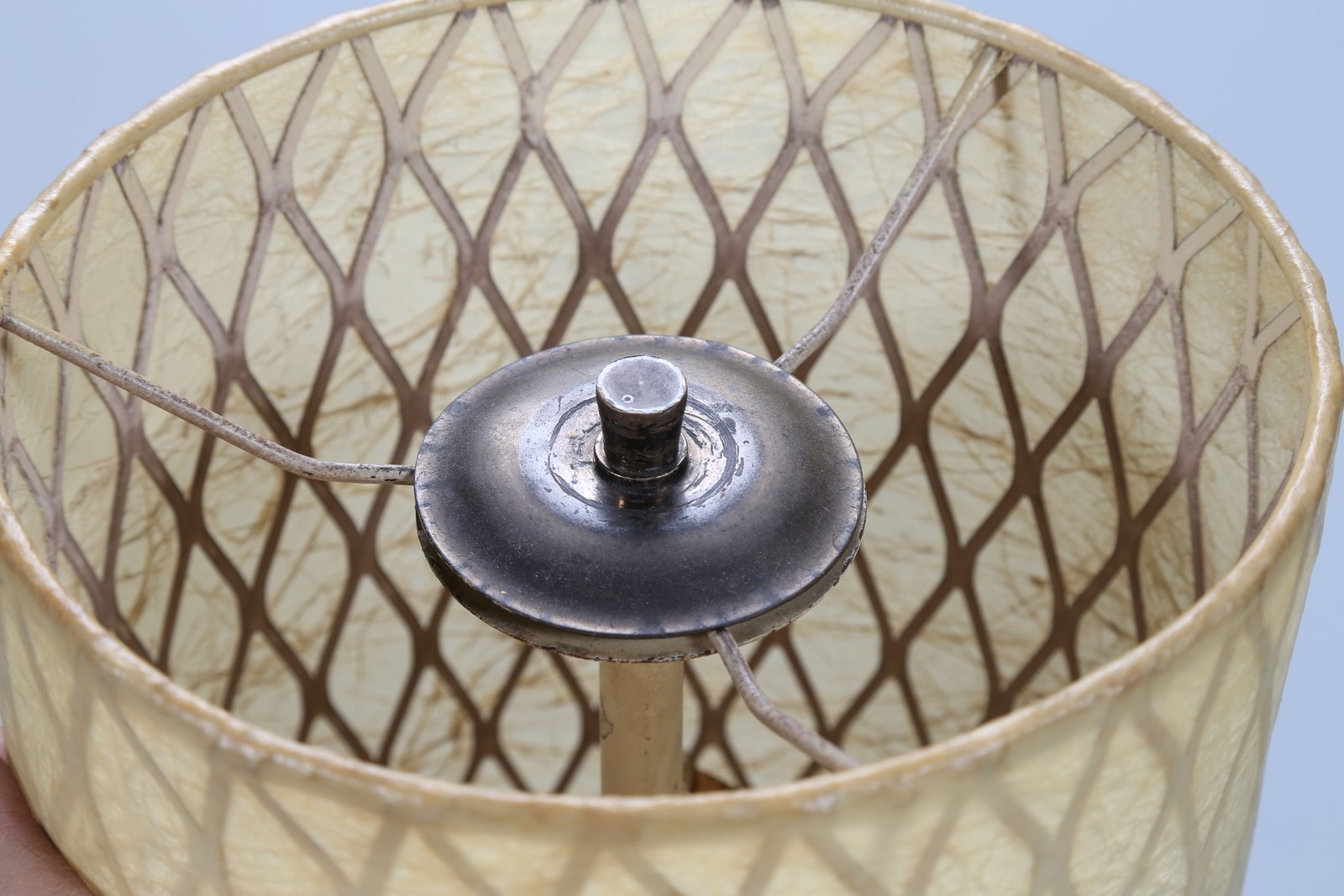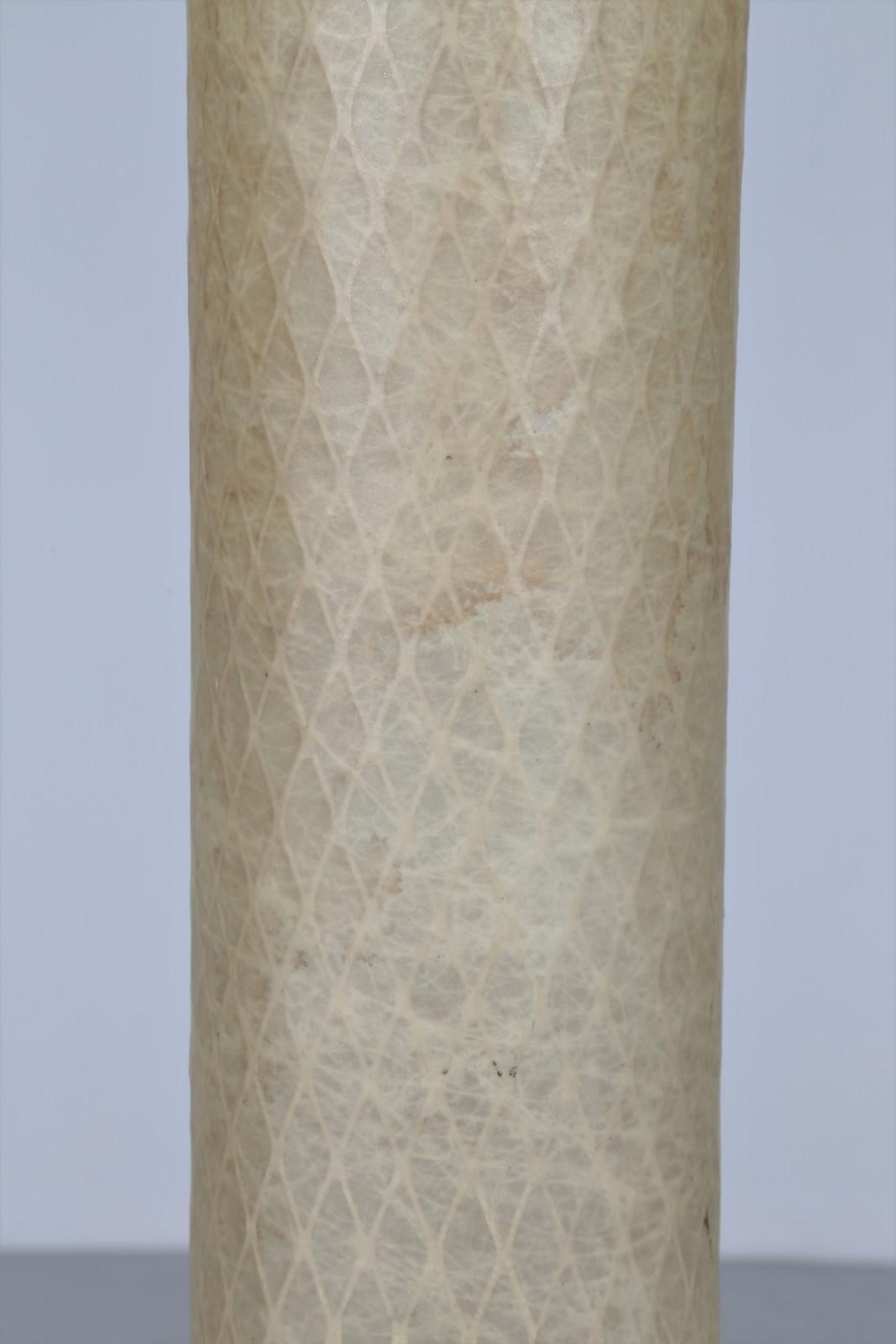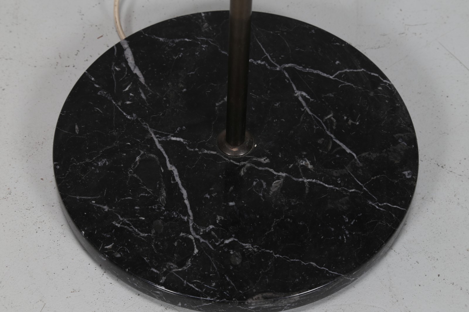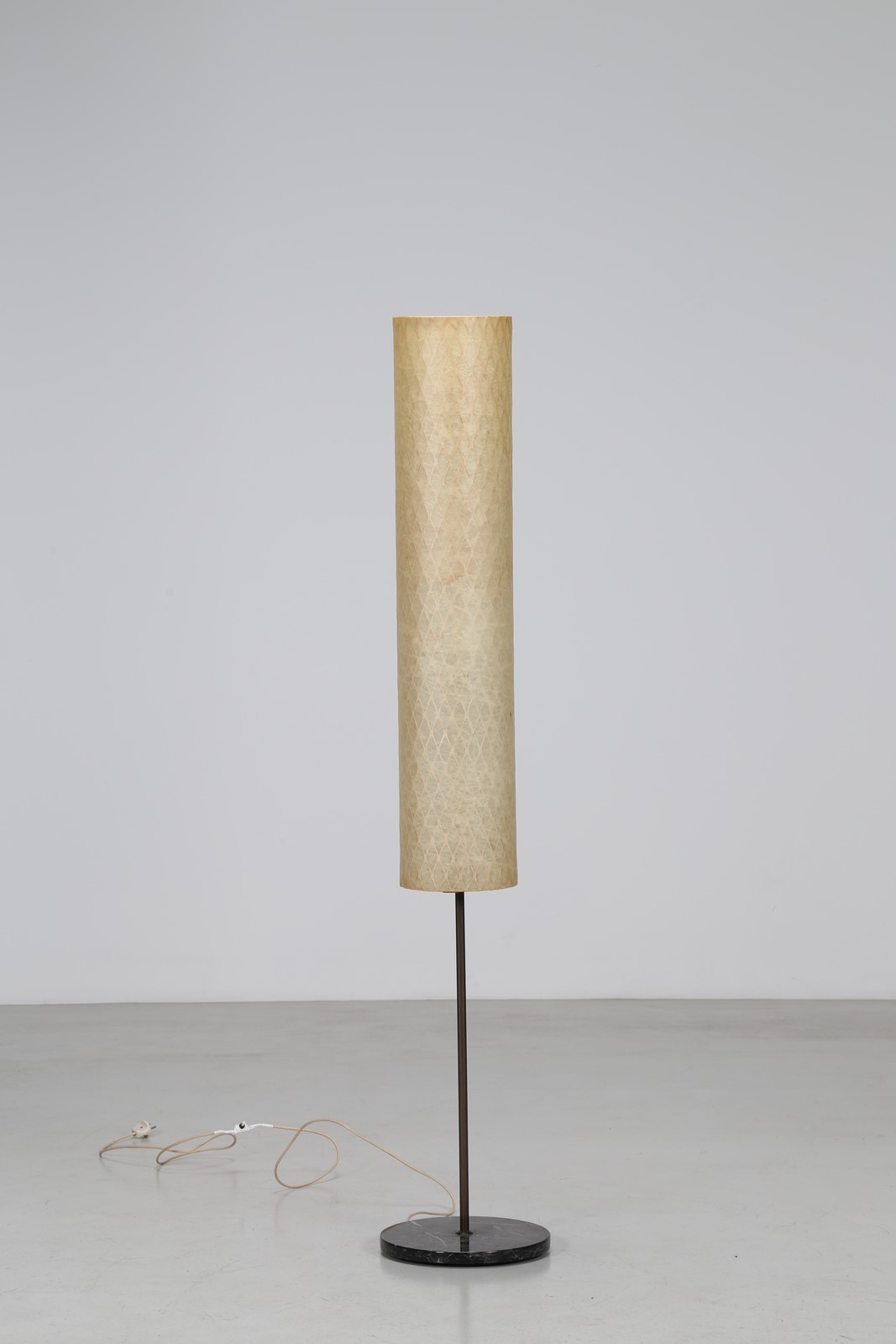 ARREDOLUCE Lampada da terra in metallo e ottone, pergamena e base in marmo, anni 50. . Cm 30,00 x 164,00.