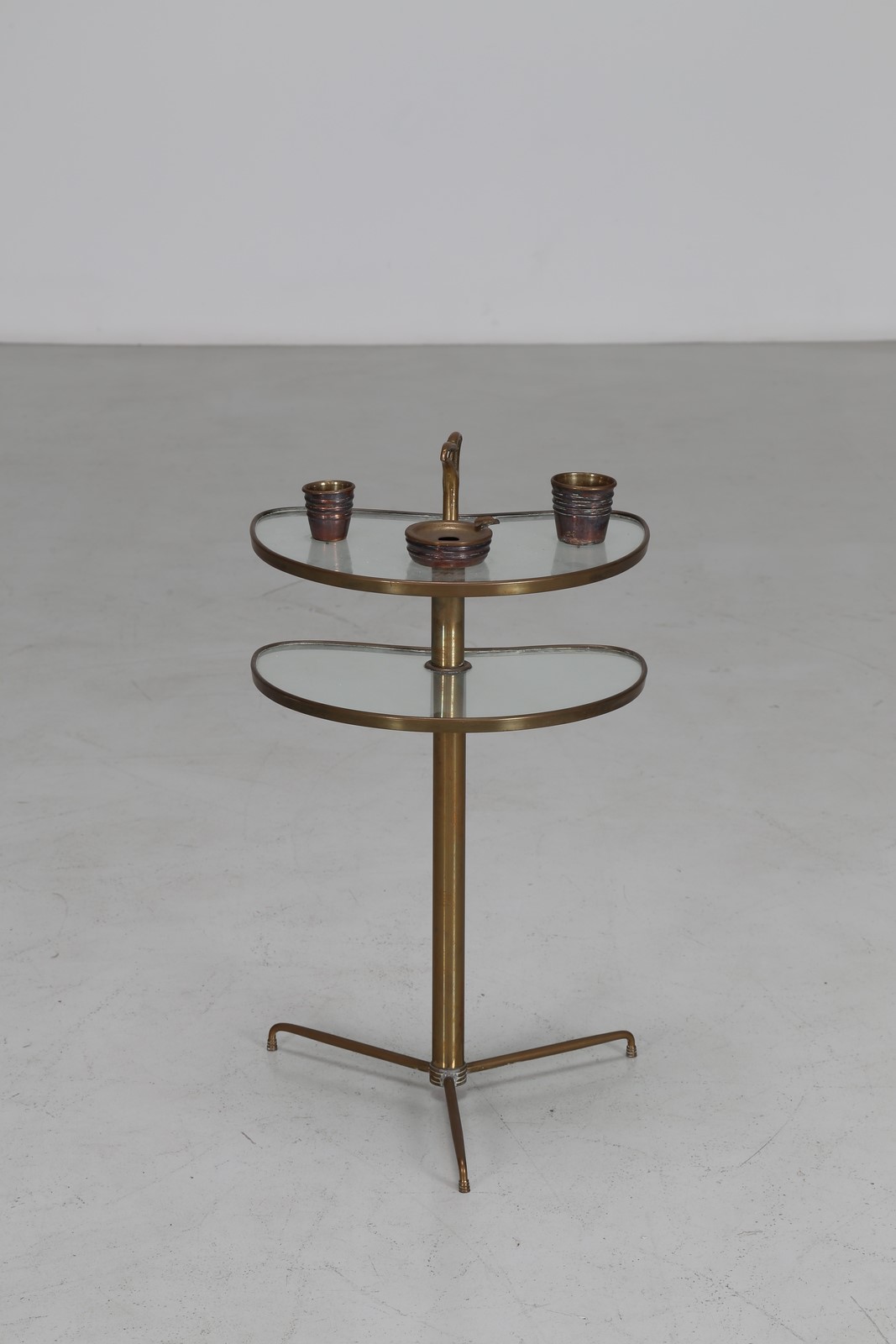 LACCA CESARE Servomuto in ottone e cristallo, anni 50. -. Cm 36,00 x 62,00 x 26,00.