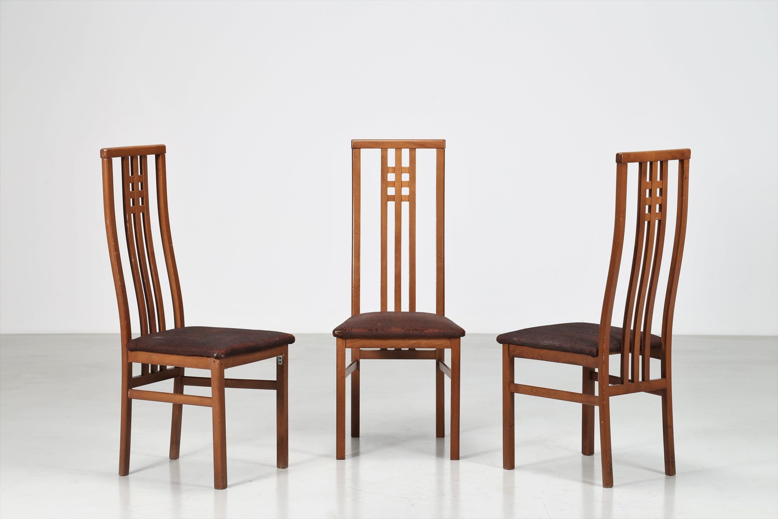 MANIFATTURA ITALIANA Tre sedie in legno e tessuto. -. Cm 46,00 x 108,50 x...
