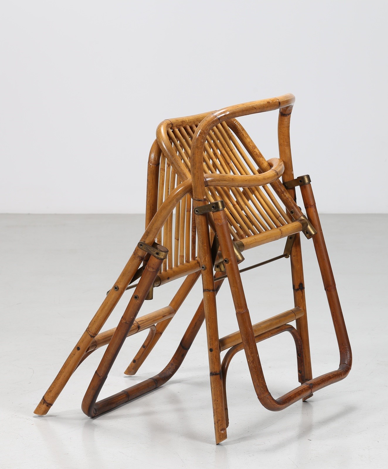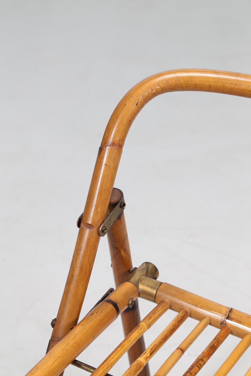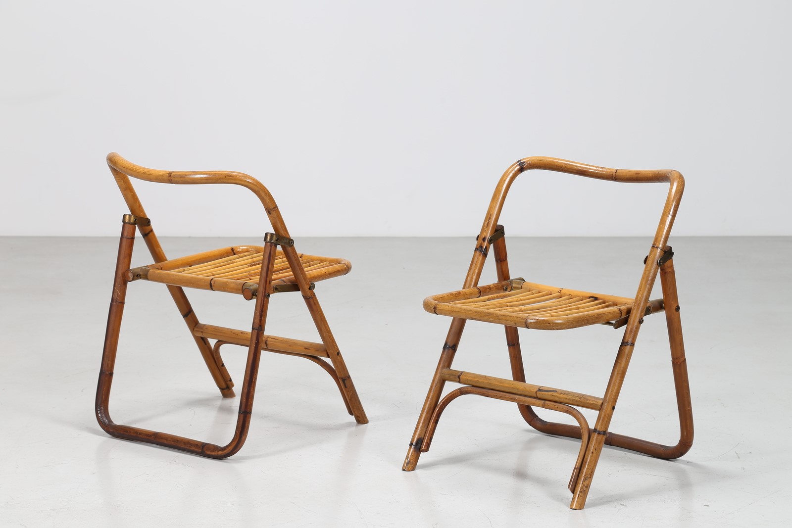 MANIFATTURA ITALIANA Coppia sedie pieghevoli in bambù con dettagli in ottone, anni 60. -. Cm 52,00 x 71,00 x 55,00.