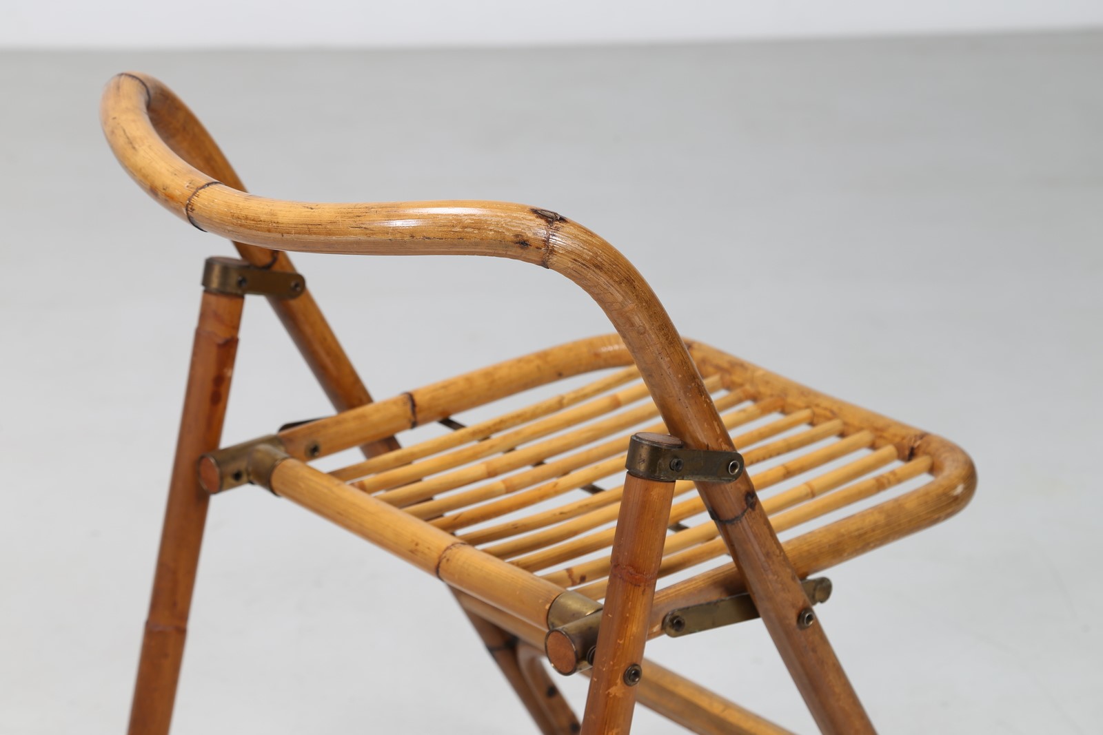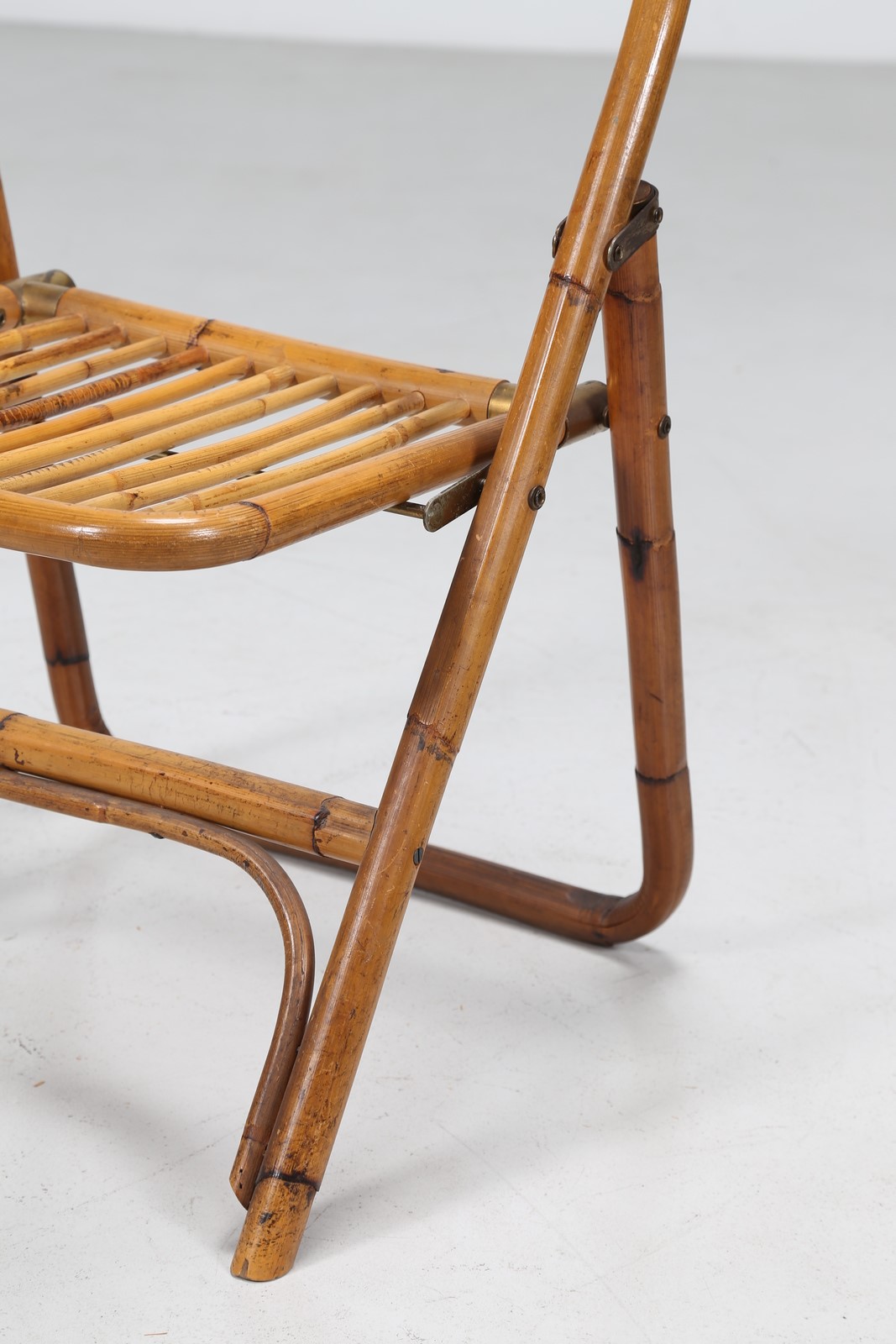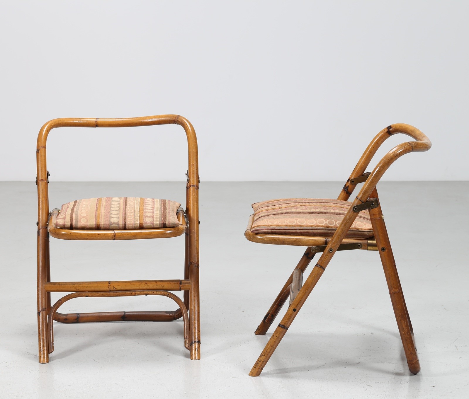 MANIFATTURA ITALIANA Coppia sedie pieghevoli in bambù con dettagli in ottone, anni 60. -. Cm 52,00 x 71,00 x 55,00.