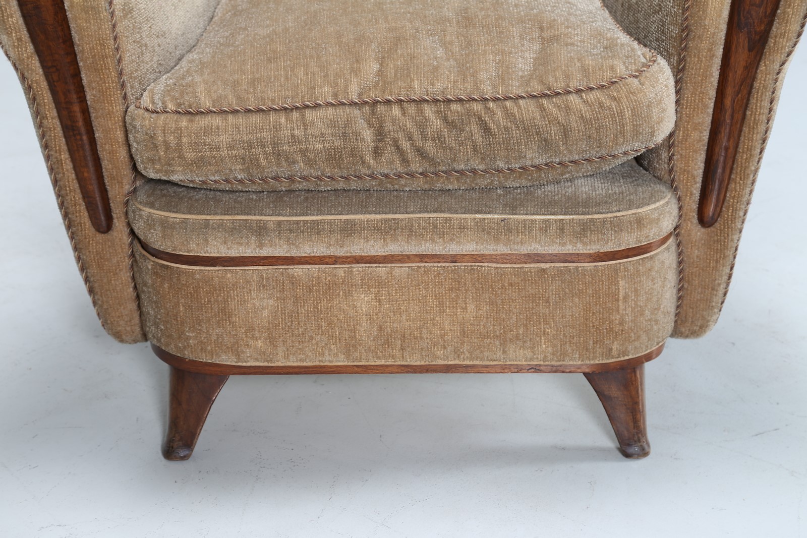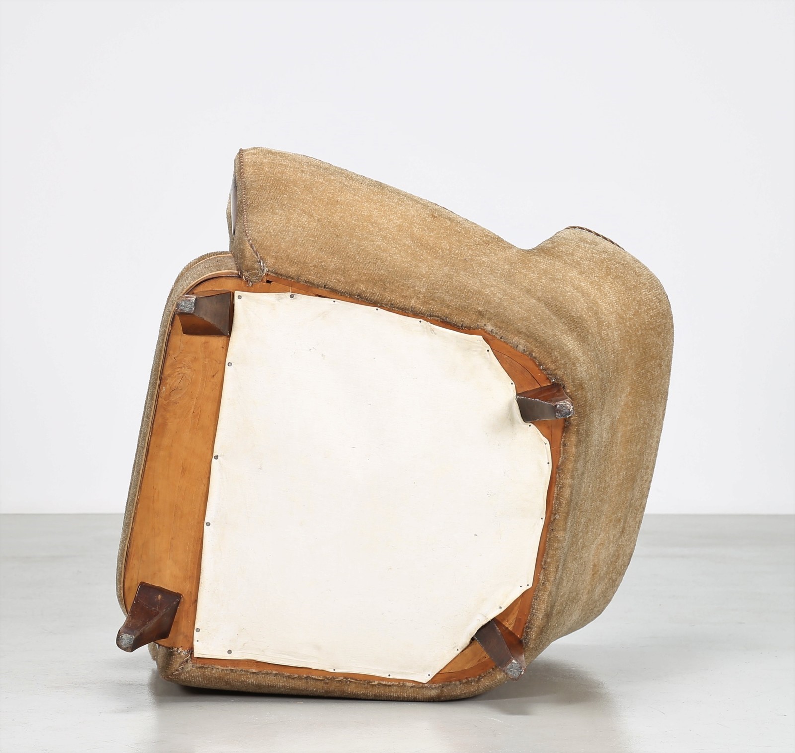 MANIFATTURA ITALIANA Poltrona in legno e tessuto, anni 50. -. Cm 93,00 x 83,00 x 90,00.