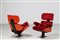 - Coppia di poltrone in acciaio e multistrato curvo, rivestite in tessuto,...
