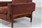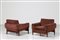 SAPORITI SERGIO Coppia poltrone in legno e tessuto originale, per F.lli Saporiti anni 70. Etichetta presente.