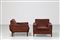 SAPORITI SERGIO Coppia poltrone in legno e tessuto originale, per F.lli...