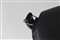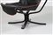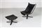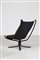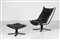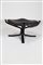 POLTRONA FRAU Poltrona con pouf in multistrato curvato laccato nero e pelle, mod. Viking, anni 80