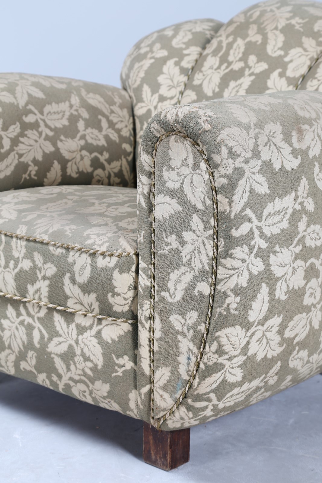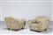 MANIFATTURA ITALIANA Coppia di poltrone in legno e tessuto, anni 50. -. Cm 88,00 x 82,00 x 80,00.