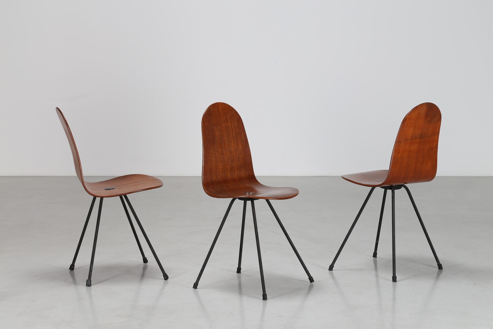 Lot 260 | CAMPO & GRAFFI Tre sedie in tondino di ferro e teak curvato, per Home Torino...
