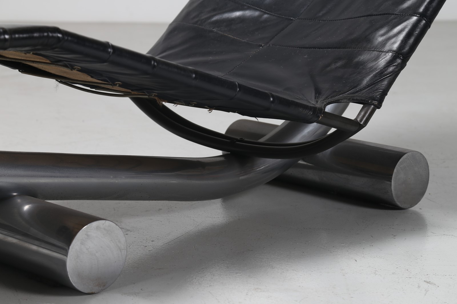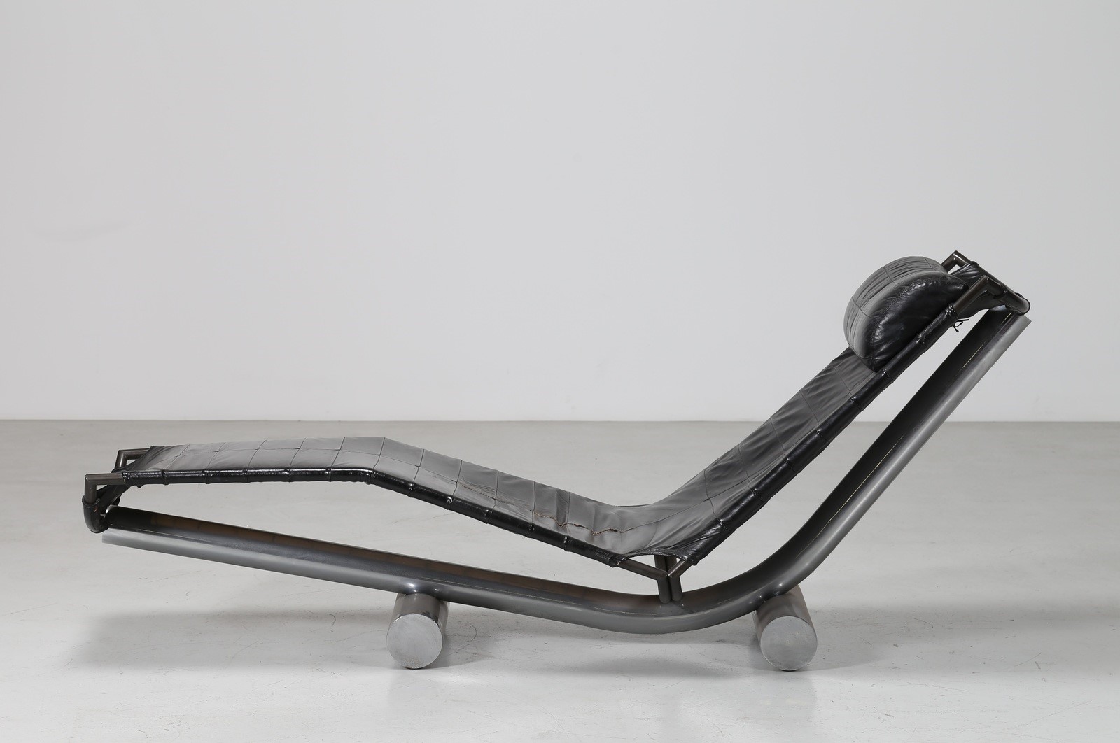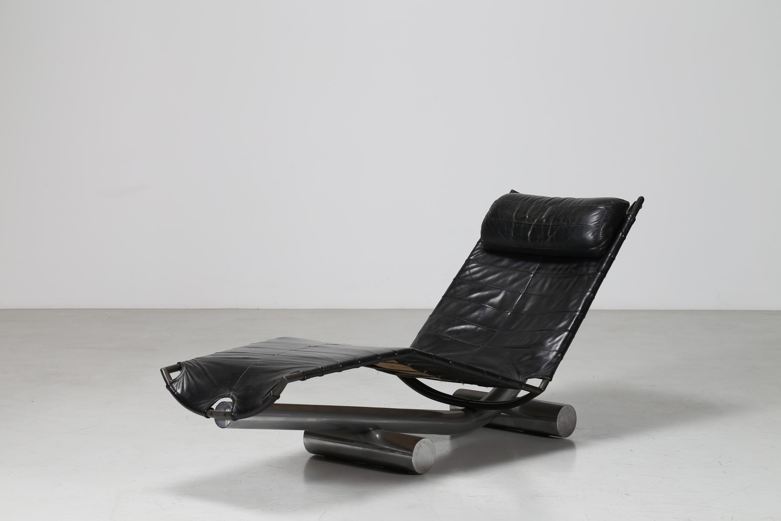 TUTTLE PAUL (1918 - 2002) Chaise lounge in metallo cromato e pelle originale, per Strassle International Collection Swittzerland anni 70 . -. Cm 58,00 x 77,00 x 180,00.