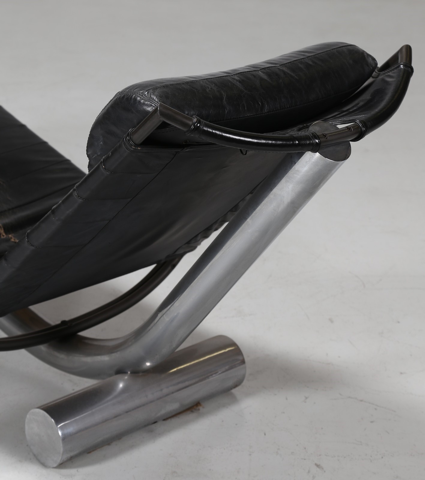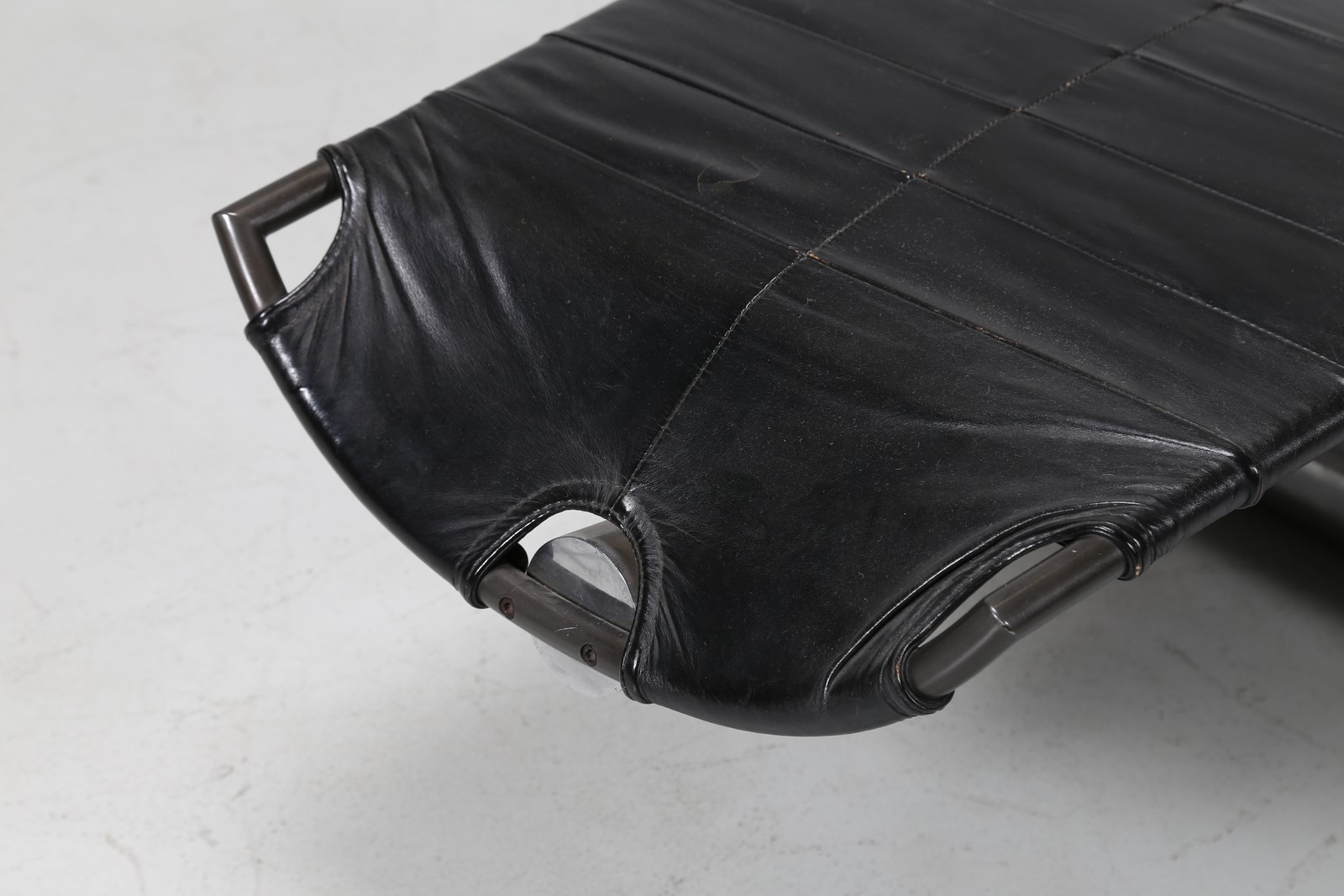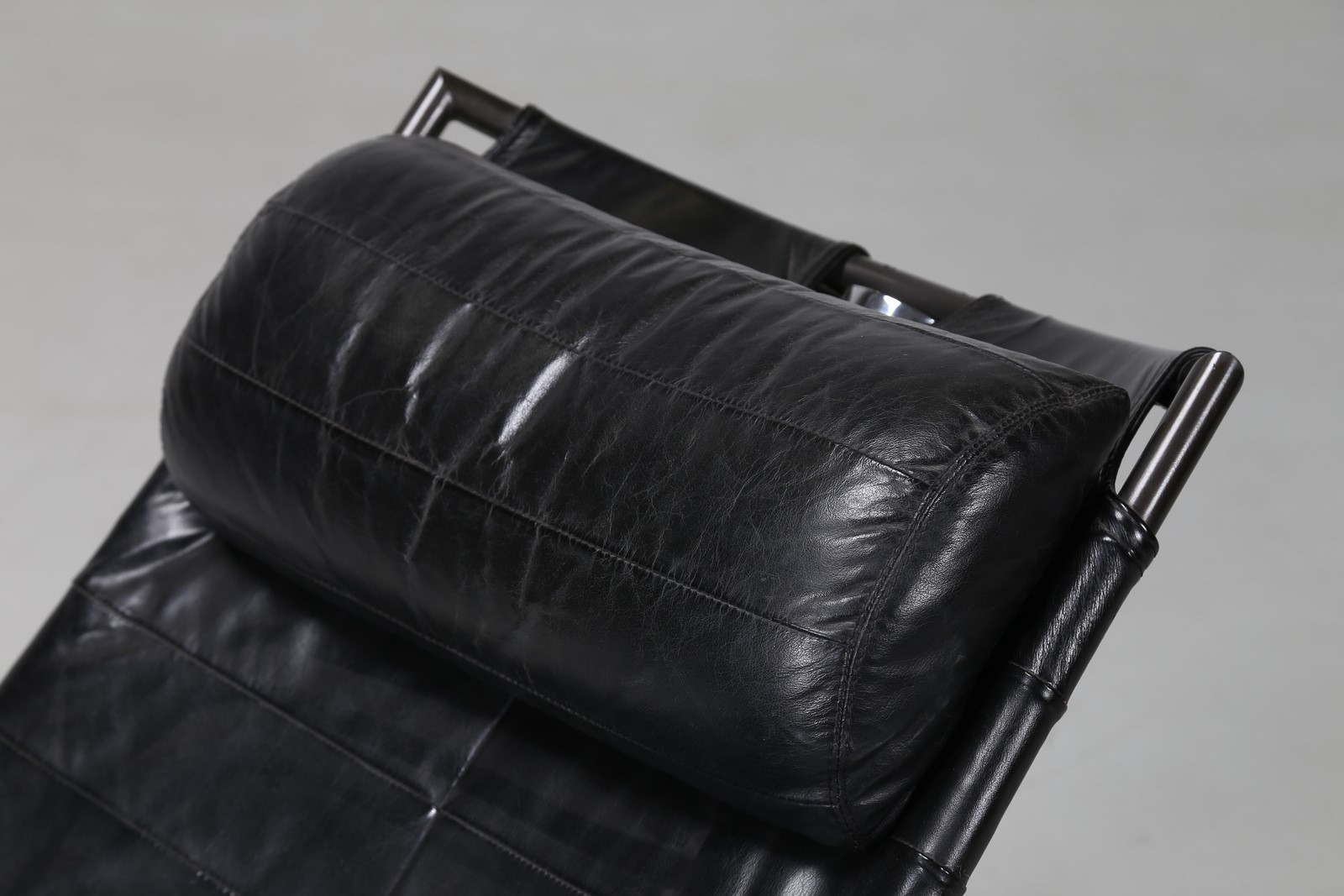 TUTTLE PAUL (1918 - 2002) Chaise lounge in metallo cromato e pelle originale, per Strassle International Collection Swittzerland anni 70 . -. Cm 58,00 x 77,00 x 180,00.
