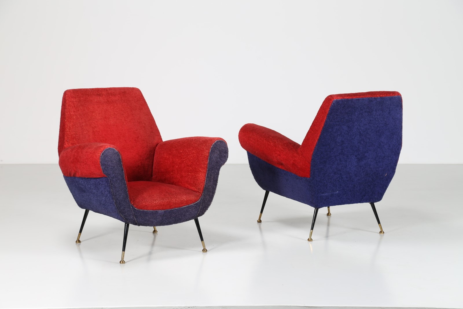 RADICE GIGI Coppia di poltrone in metallo e tessuto, per Minotti anni 50 . -....